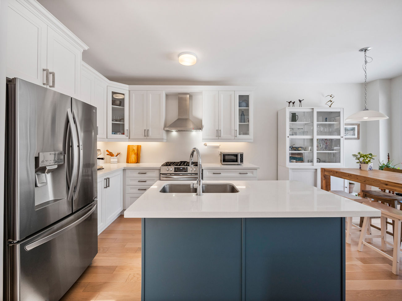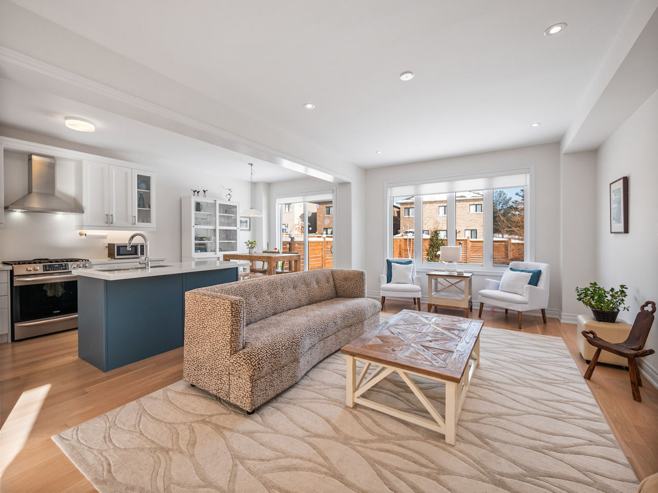 With approximately 2,410 square feet of above-grade living space and 9-foot ceilings, the home features a bright, carpet-free interior with hardwood flooring throughout. Upgraded cabinetry and countertops are found in all areas, including quartz countertops in the kitchen, delivering a clean and cohesive modern finish.