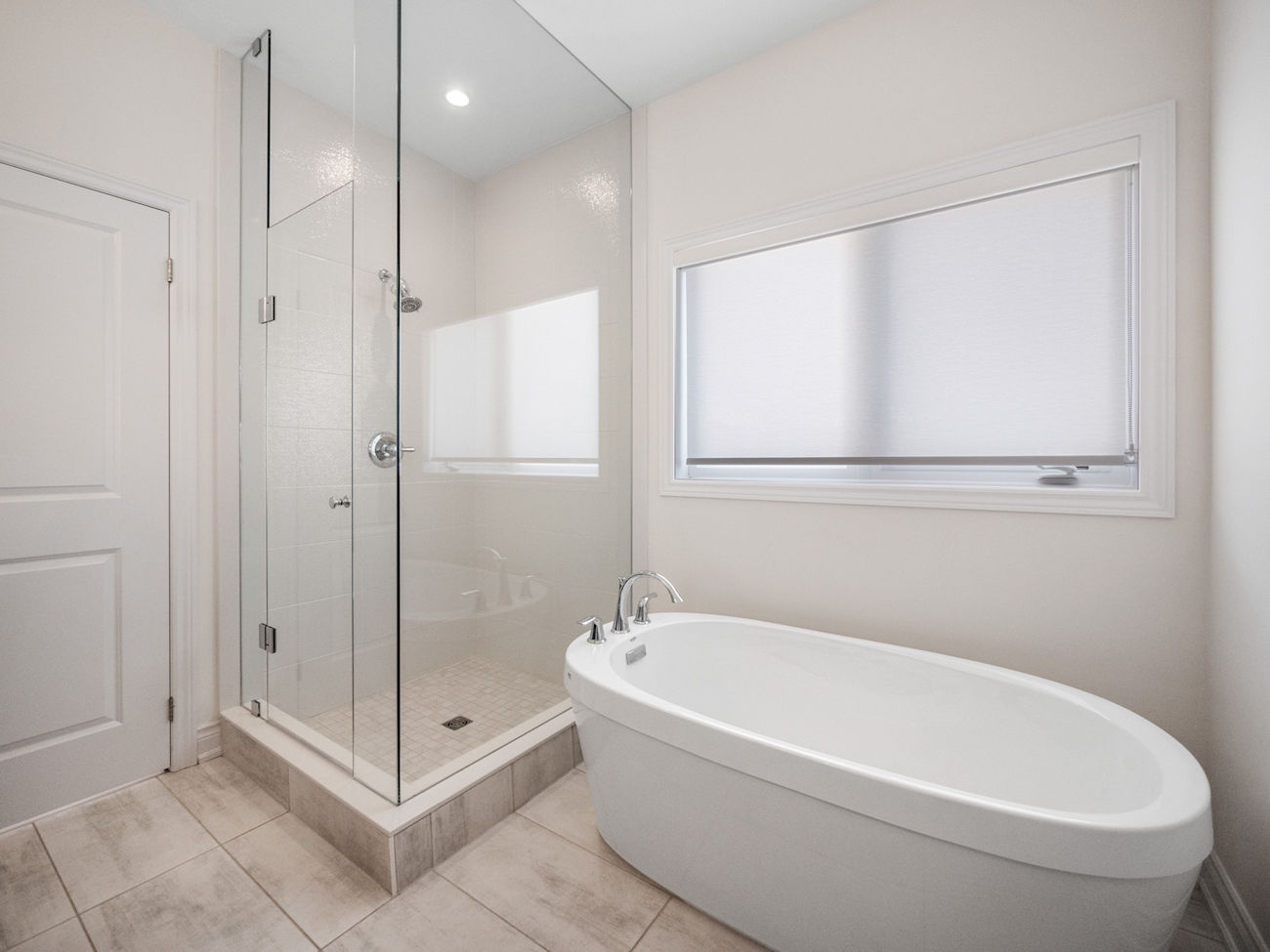 The upper level offers four well-proportioned bedrooms, including a spacious primary retreat with a walk-in closet and a luxurious five-piece ensuite featuring a standalone deep soaker tub and a separate glass-enclosed shower. Convenient upper-level laundry and a private office complete the second floor.