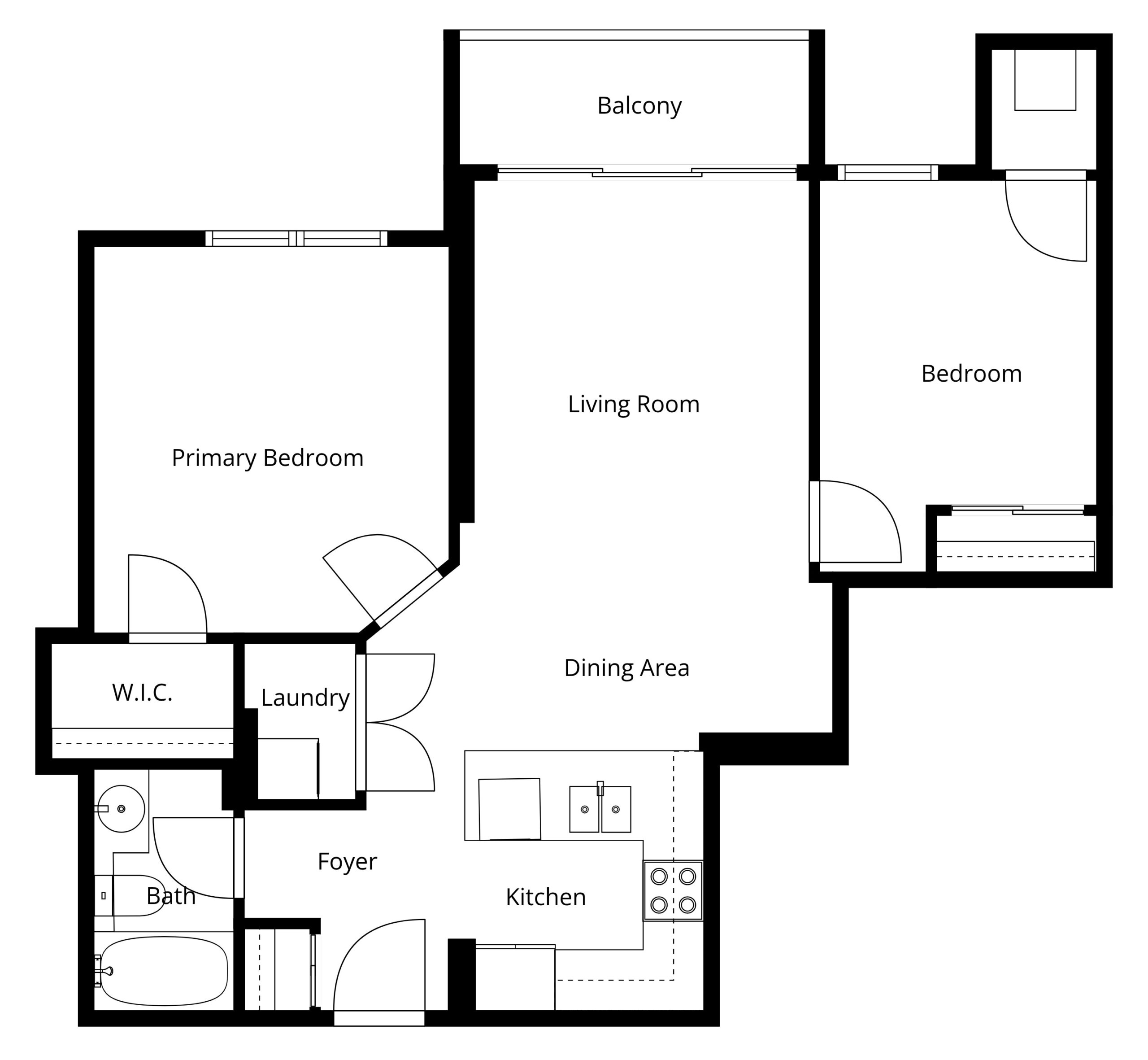 | 5 | Second Bedroom | Flat | 2.73 x 3.86 | Balcony, Double Closet, Large Window |