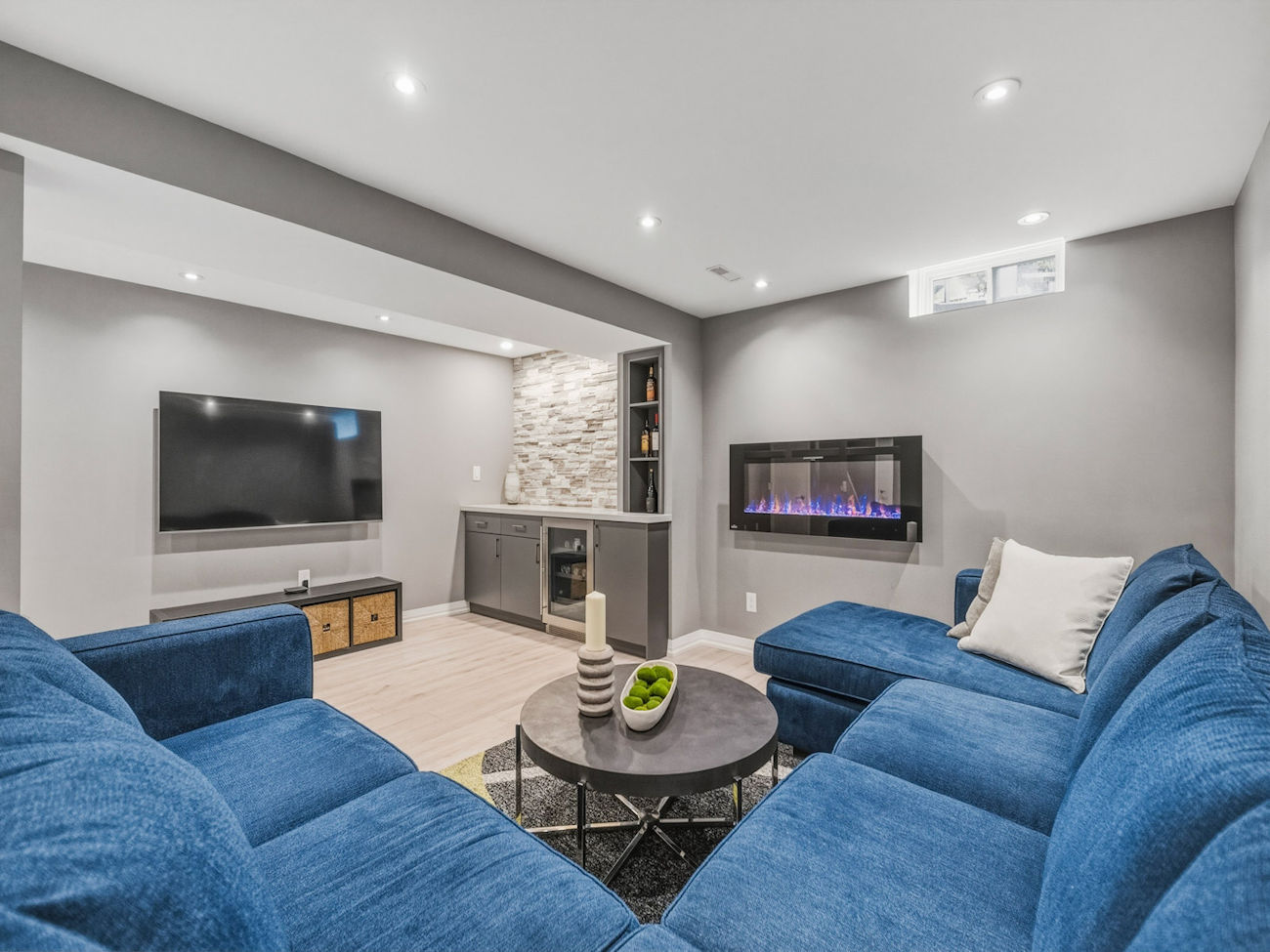 The fully finished basement extends the home’s versatility, offering laminate flooring, pot lights, above-grade windows, and a spacious layout with an electric fireplace, built-in desk, dry bar with bar fridge, an additional bedroom, and a renovated 5-piece bathroom. This level is perfectly suited for extended family, guests, or additional living space.