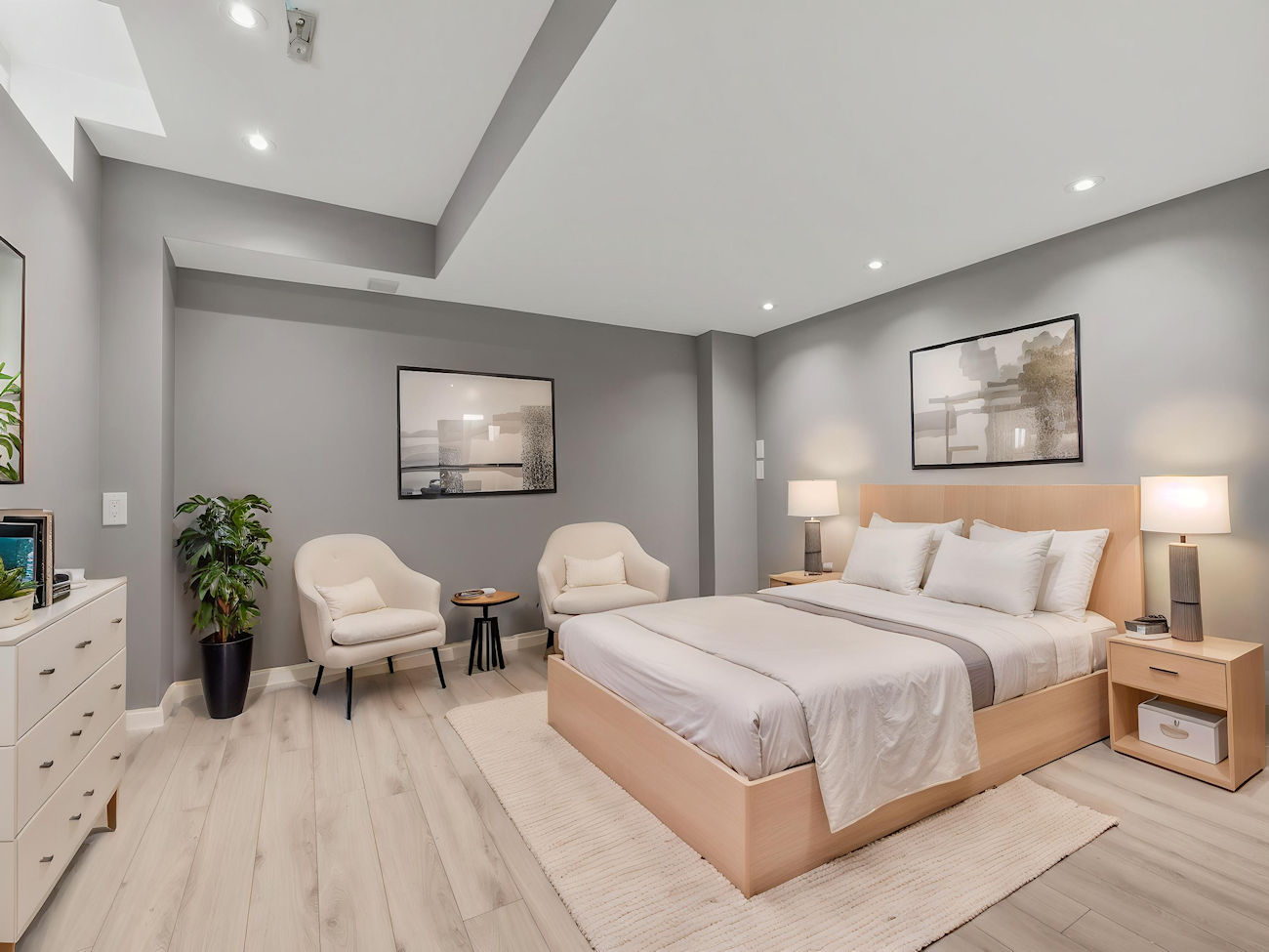 The primary bedroom serves as a true retreat, complete with a walk-in closet and a beautifully renovated 5-piece ensuite featuring a glass shower, soaker tub, and double vanity, creating a spa-like atmosphere.