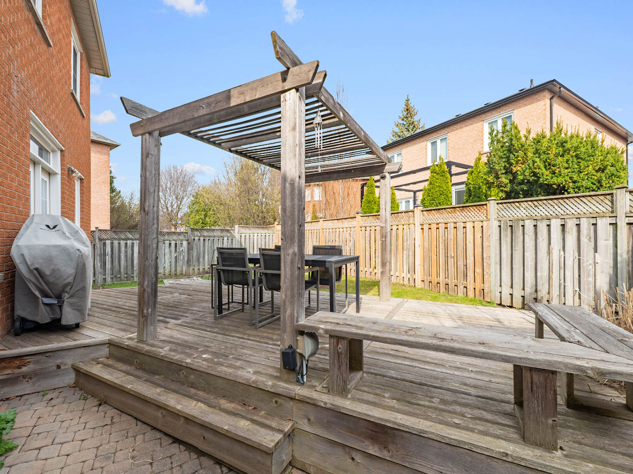 Set on a low-traffic street, the home offers over 2,500 sq. ft. of well-designed living space, featuring 4+1 bedrooms and 4 bathrooms. Sun-filled principal rooms are enhanced by hardwood flooring and crown moulding, while the family room with a gas fireplace creates a warm and inviting gathering space. The bright eat-in kitchen is thoughtfully designed with stainless steel appliances, ample pantry storage, and a walkout to a private landscaped garden and deck, ideal for both everyday living and entertaining.
