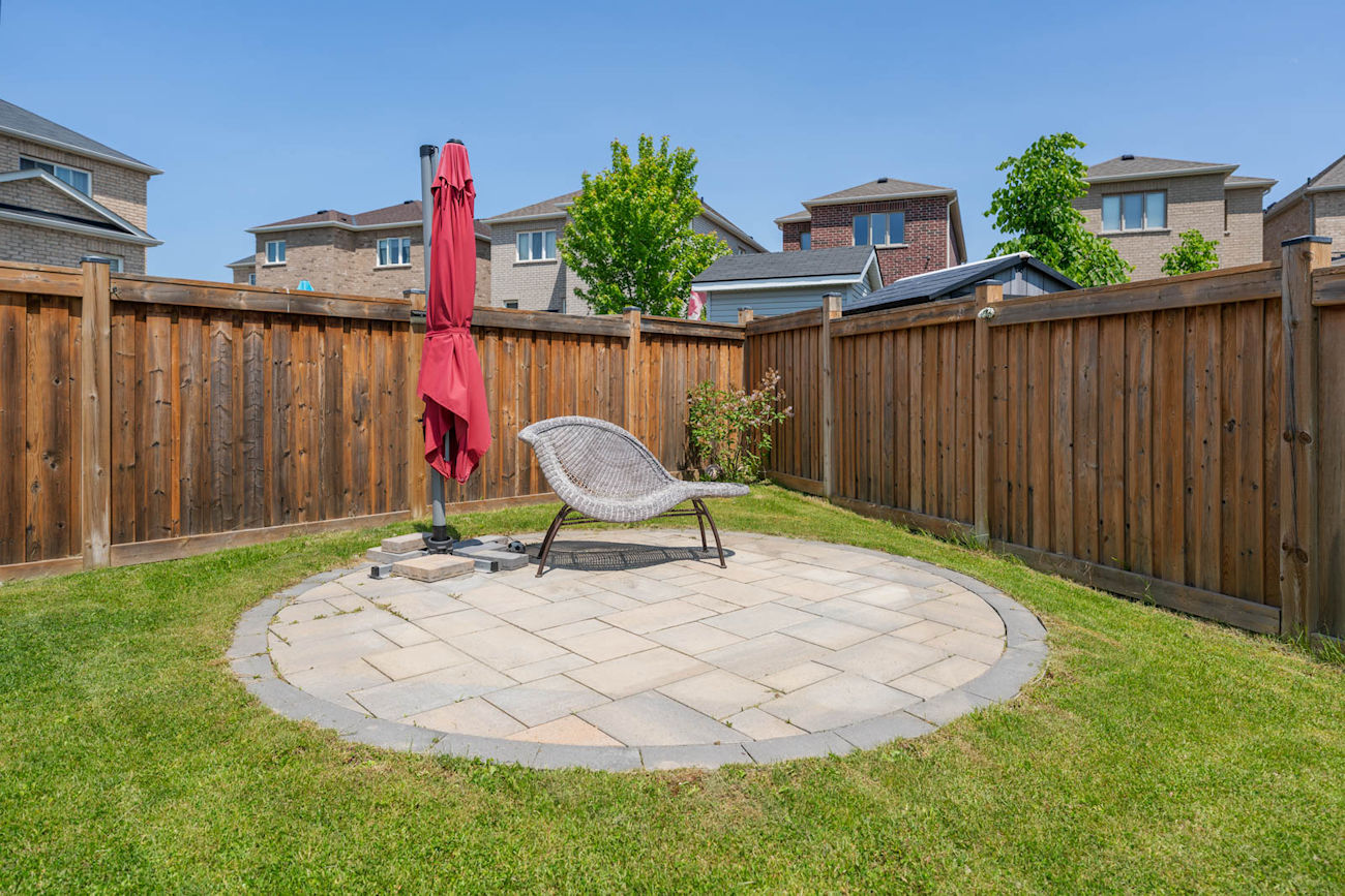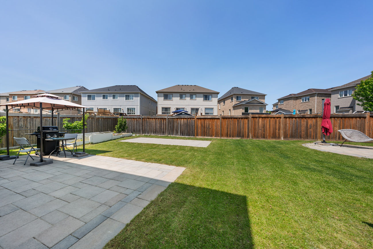 The unfinished basement provides potential for a separate entrance, offering added value and flexibility. Outdoor features include a professionally landscaped exterior with interlocking at the front, a backyard patio, a dedicated fire pit area, and a paved section ideal for a future swimming pool. The extended driveway accommodates 6 to 8 vehicles, making it perfect for large or multi-generational families.