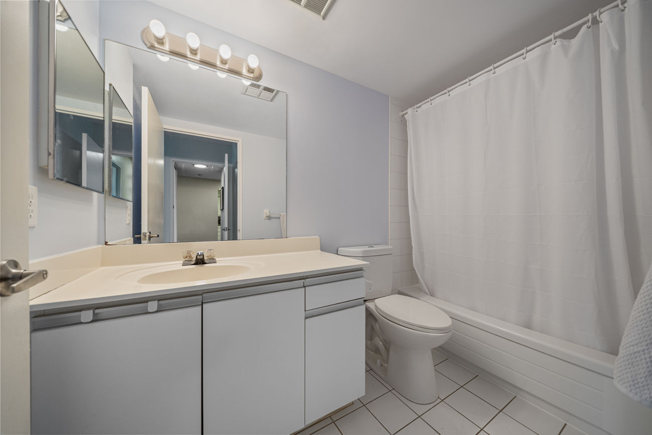 This thoughtfully maintained 2-bedroom, 2-bathroom suite offers approximately 900–999 square feet of carpet-free living space, designed for both everyday functionality and relaxed living. Expansive windows fill the interior with natural light, while the private balcony provides a clear, open outlook. The layout is practical and inviting, anchored by a functional kitchen complete with a breakfast bar and updated appliances, seamlessly flowing into the living and dining areas.