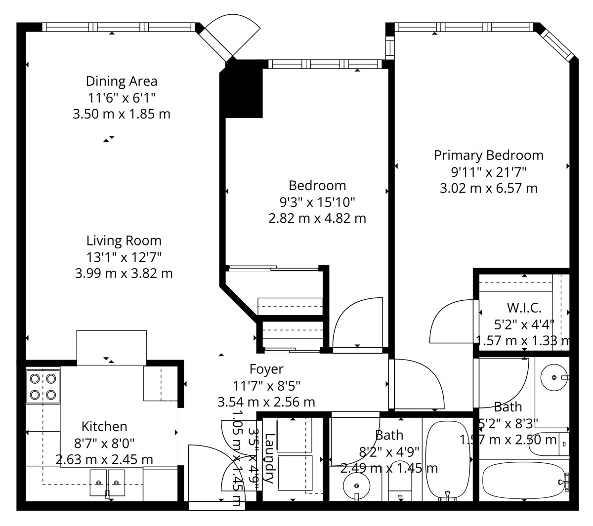 | 7 | Bathroom | Flat | 2.49 x 1.45 | 4 Piece Bathroom, Tile Floor, Built-In Vanity |