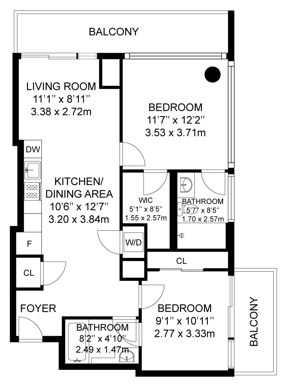 6 | 2nd Br | Main | 2.77 x 3.33 | Walkout To Balcony, 3-Piece Ensuite, Combined With Bedroom |