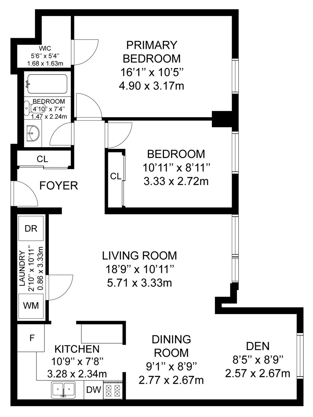 7 | Laundry | Flat | 0.86 x 3.33 | Tile Floor, Separate Room, Linen Closet |