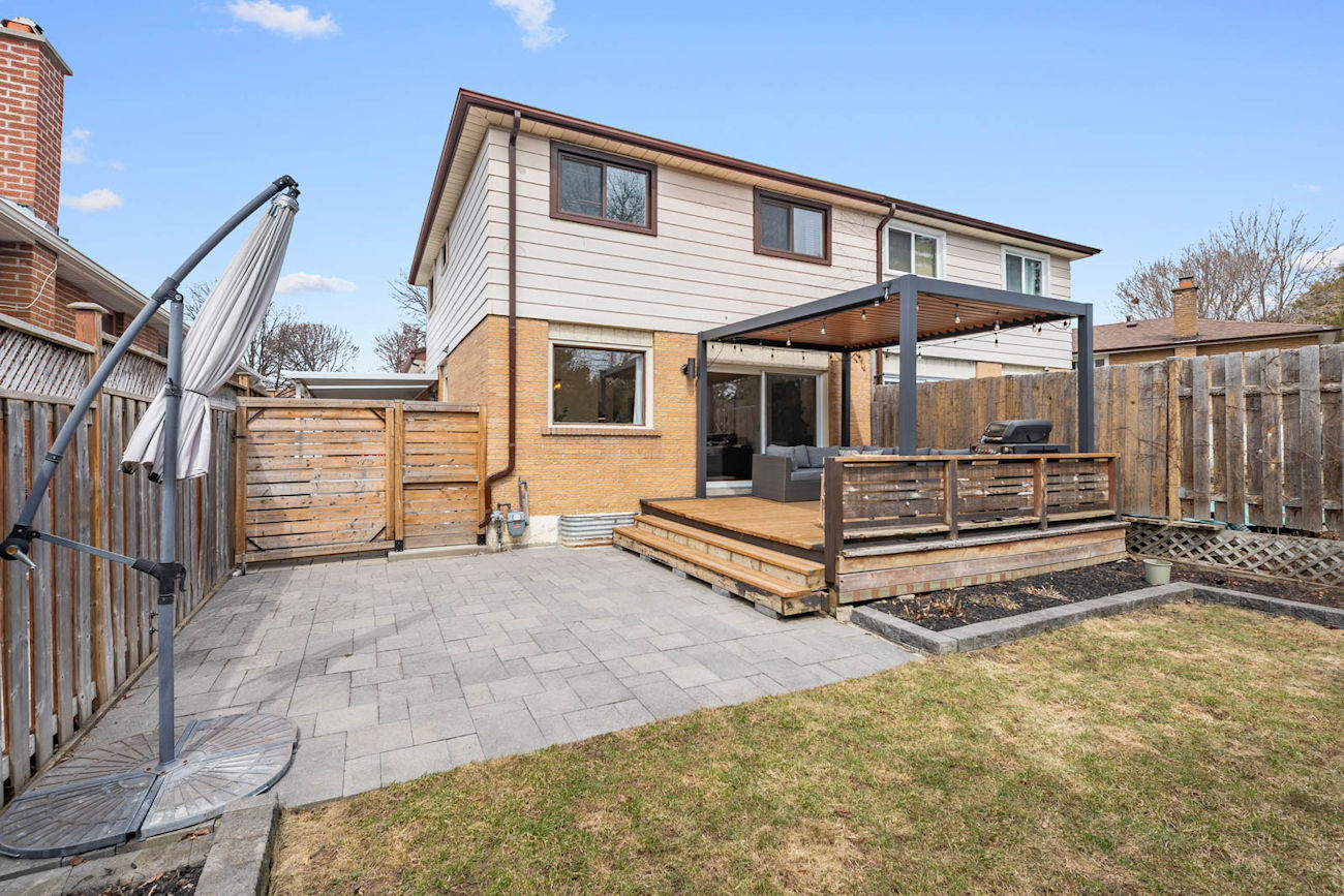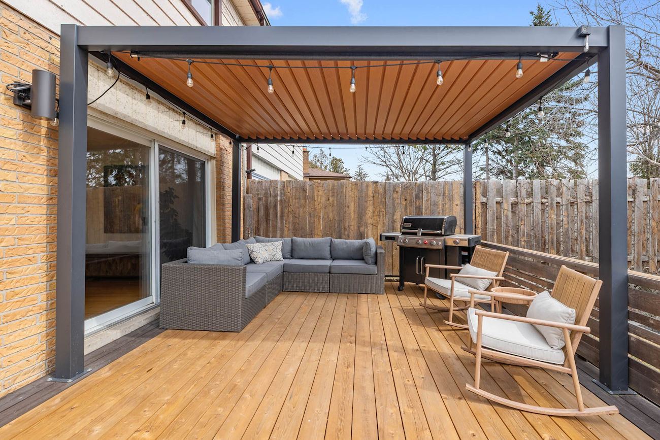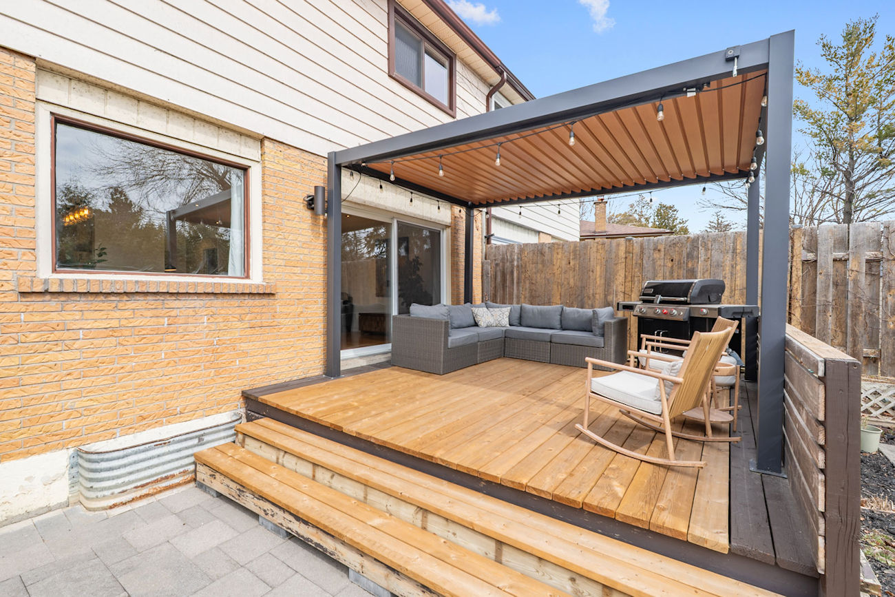 The outdoor setting is equally impressive. The professionally landscaped, fully levelled backyard is surrounded by mature 20-foot hedges, creating a private retreat rarely found in the city. With updated deck boards, a modern aluminum pergola, and generous entertaining space, it is designed for both relaxation and hosting.