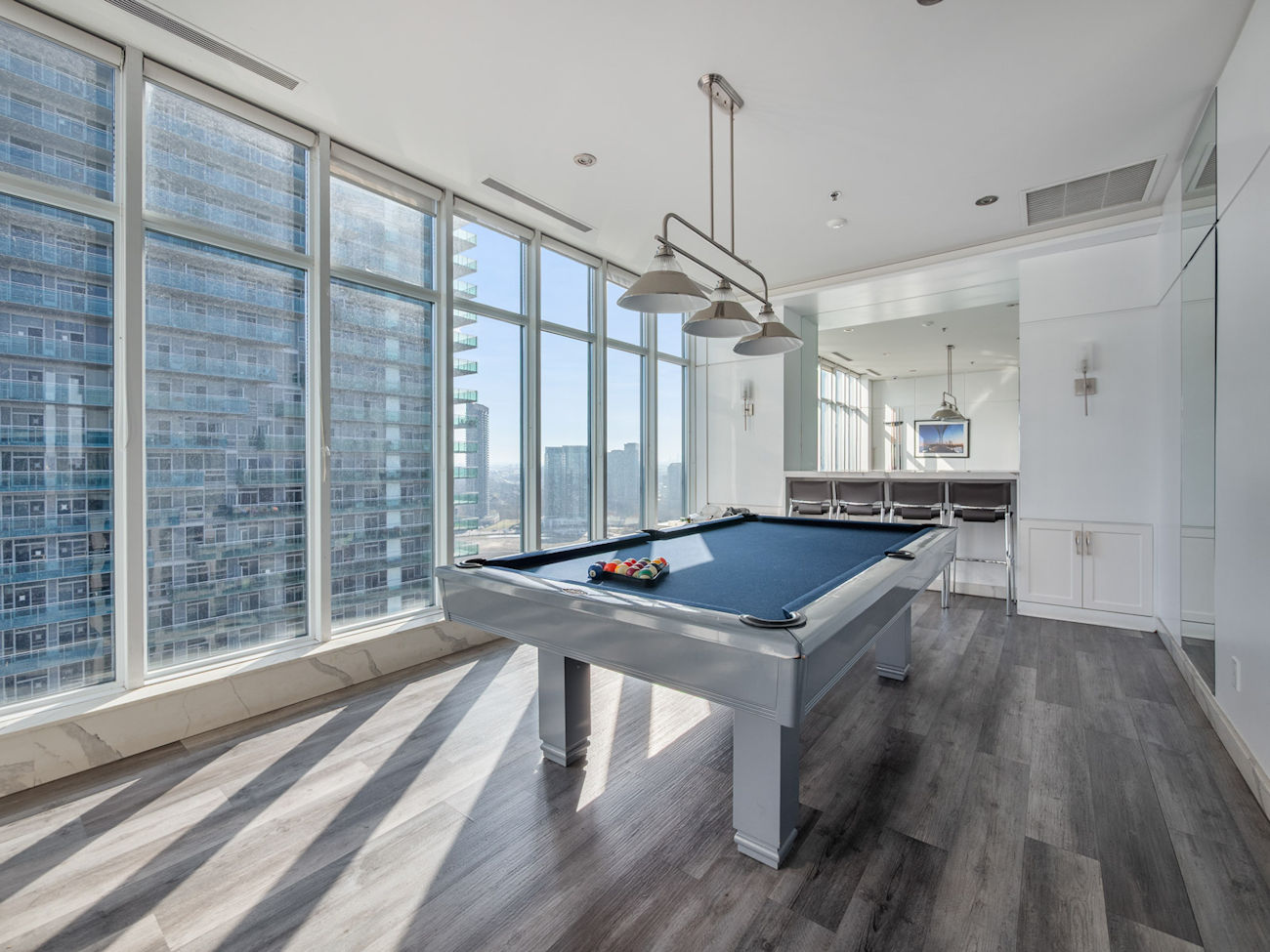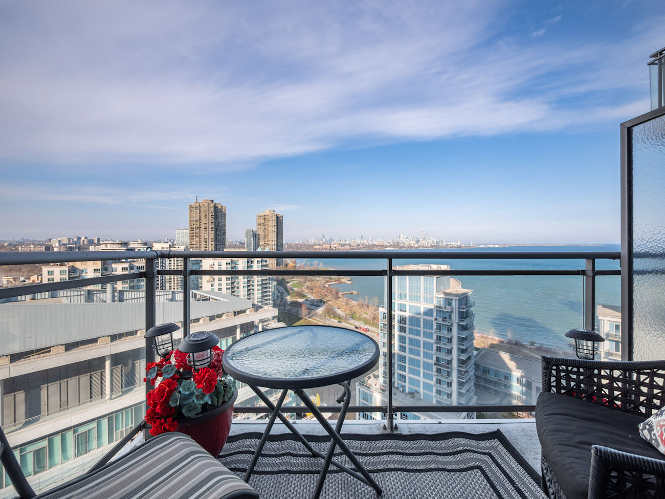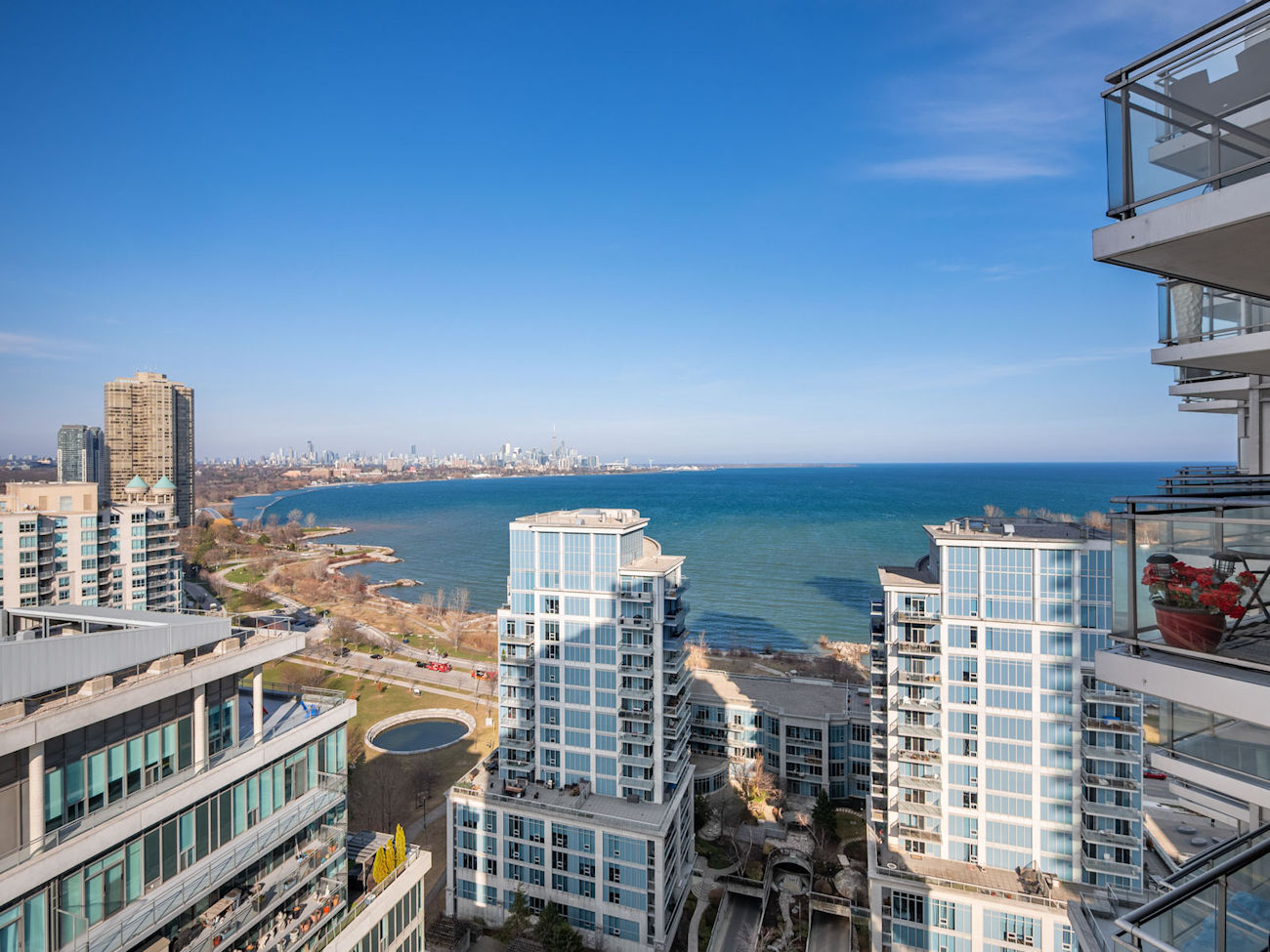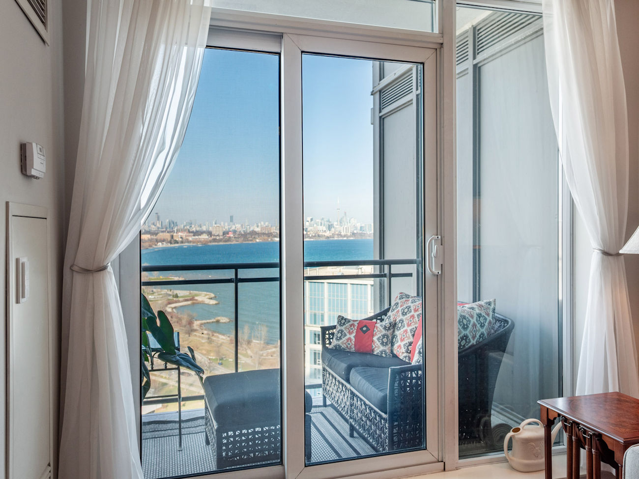 Residents enjoy a full range of premium amenities, including a saltwater swimming pool, jacuzzi, sauna, golf simulator, multiple fitness facilities, theatre room, library, party room, guest suites, rooftop sky room, and 24-hour concierge service. Ideally located near The Queensway, with convenient access to Highway 427, the Gardiner Expressway, Mimico GO Station, and TTC, the building is also surrounded by some of the area’s most scenic outdoor spaces, including Humber Bay Shores Park, Sunnyside Beach, and High Park, offering a balanced lifestyle of urban convenience and waterfront living.