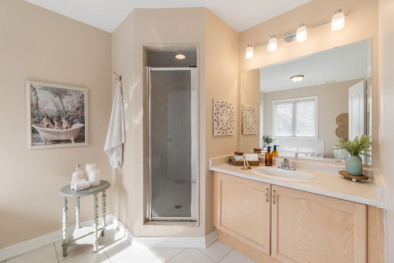 The main level features a bright and practical layout, elevated by pot lights and updated light fixtures completed between 2025 and 2026. The kitchen has been refreshed with new paint in 2025 and includes stainless steel appliances, such as a 3-rack dishwasher and a double fridge. A recently updated powder room vanity adds a modern touch to the space.