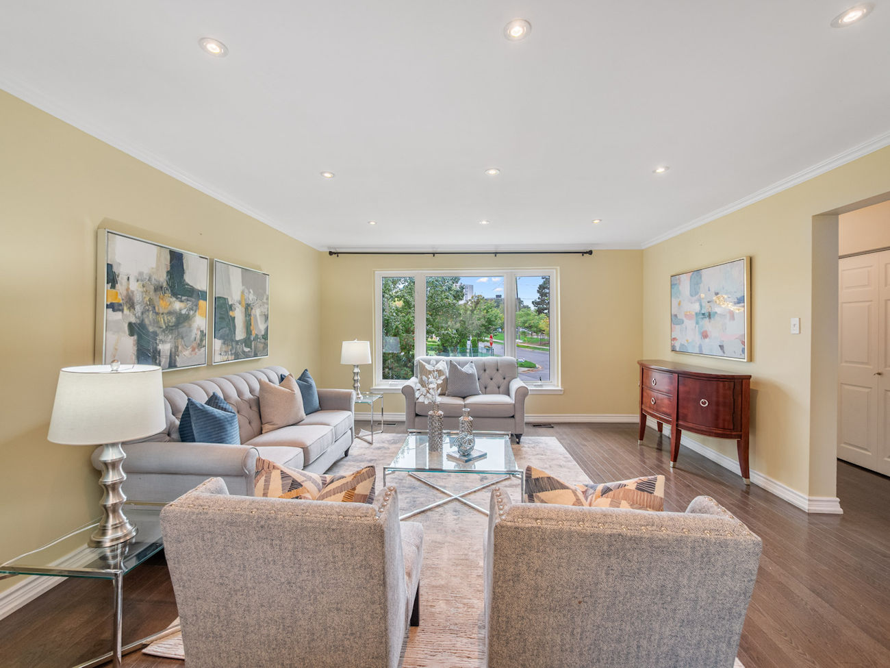 1 | Living | Main | 5.26 x 4.55 | Hardwood Floor, Pot Lights, Crown Moulding |