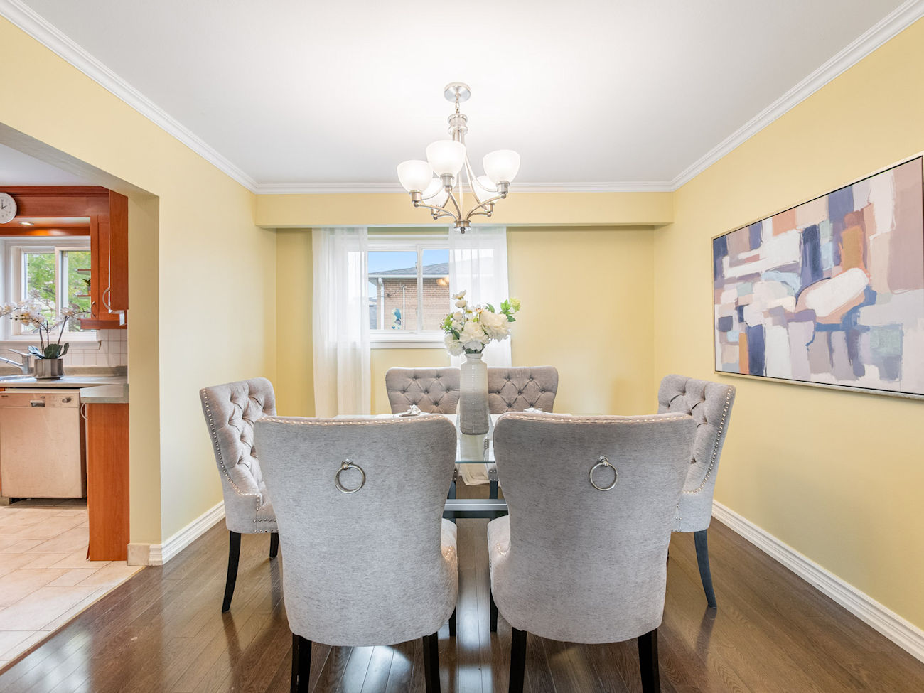 2 | Dining | Main | 3.05 x 3.38 | Hardwood Floor, Crown Moulding, O/Looks Backyard |