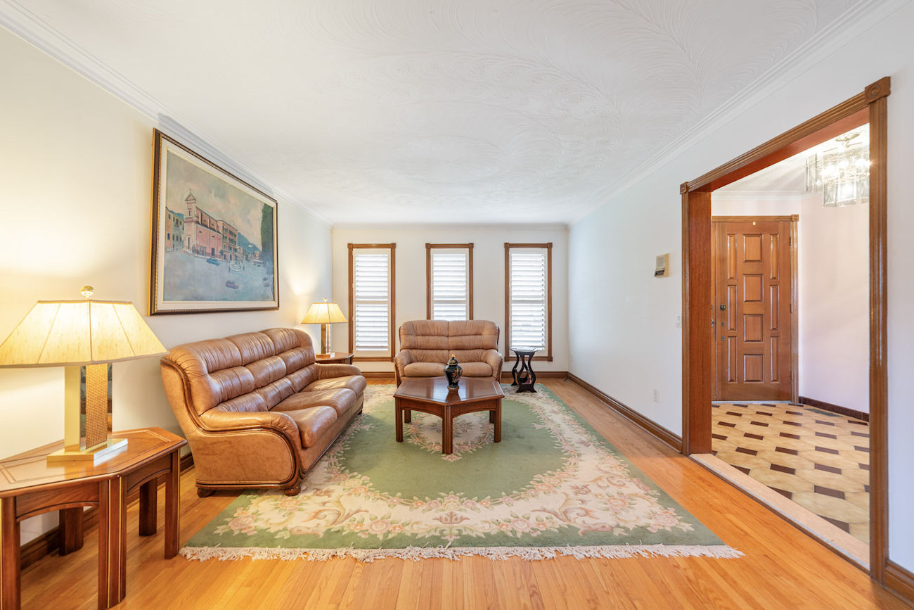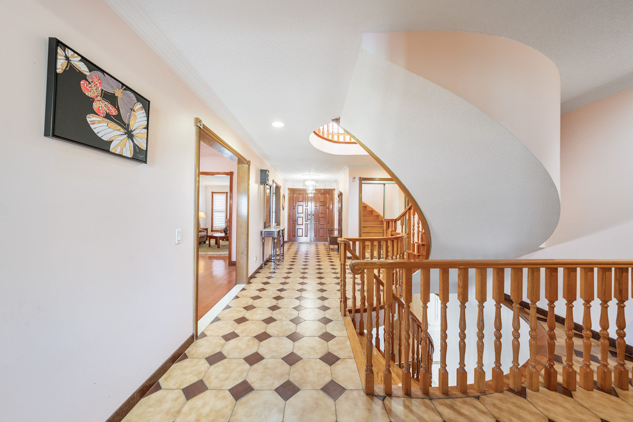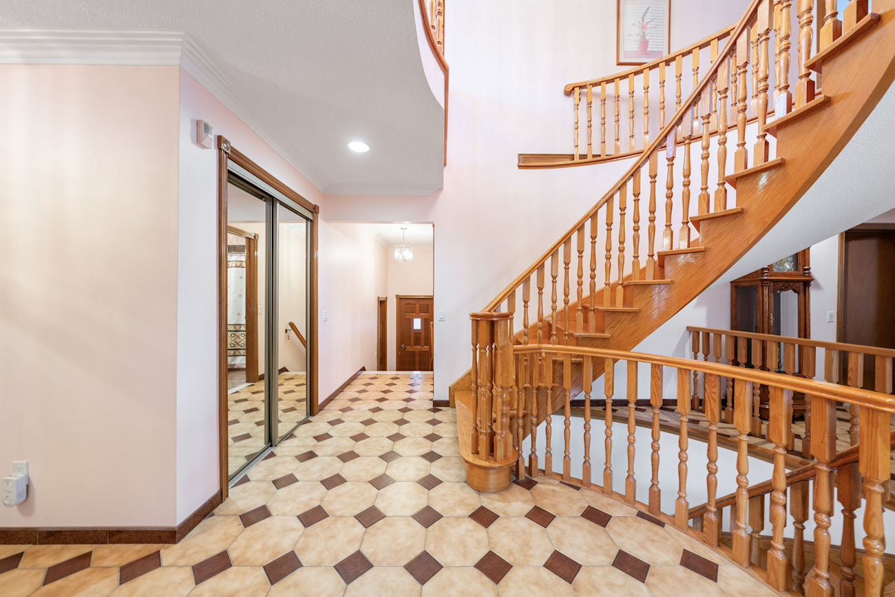 Inside, the home features 5 bedrooms, including a convenient main floor bedroom that is ideal for guests, extended family, or a home office. A spacious foyer welcomes you in, highlighted by original wood staircase details that add character and warmth. Generous living and family rooms create comfortable spaces for both everyday living and entertaining, while the functional layout offers large principal rooms filled with natural light.