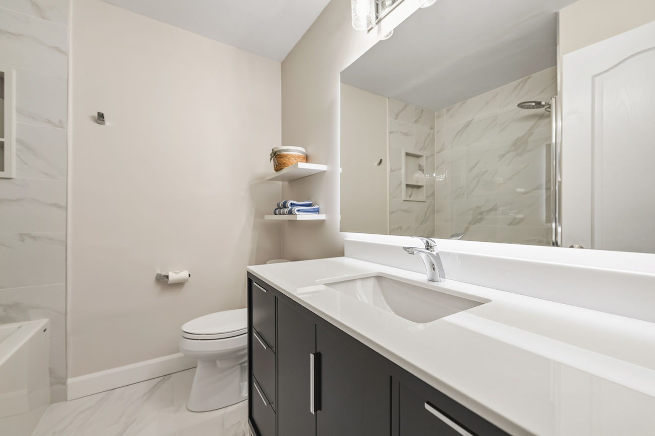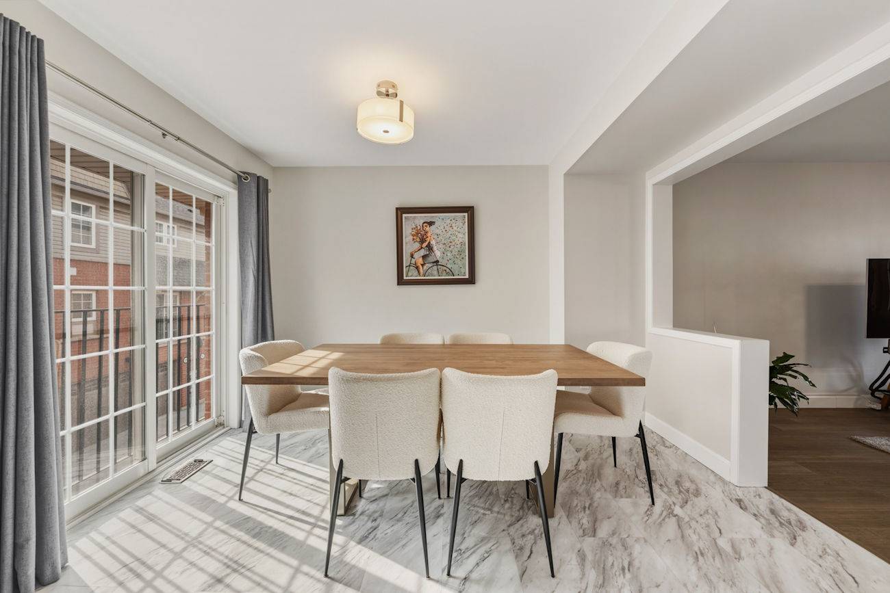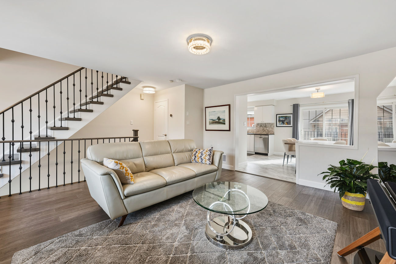 This bright and functional home offers approximately 1,235 square feet of well-appointed living space, featuring 3 spacious bedrooms and 2 bathrooms. The second level presents an inviting open-concept layout, highlighted by a modern kitchen with stainless steel appliances, backsplash, and pantry, seamlessly flowing into the dining and living areas. Laminate flooring enhances the space, while a walkout leads to a private balcony, perfect for relaxing or entertaining.