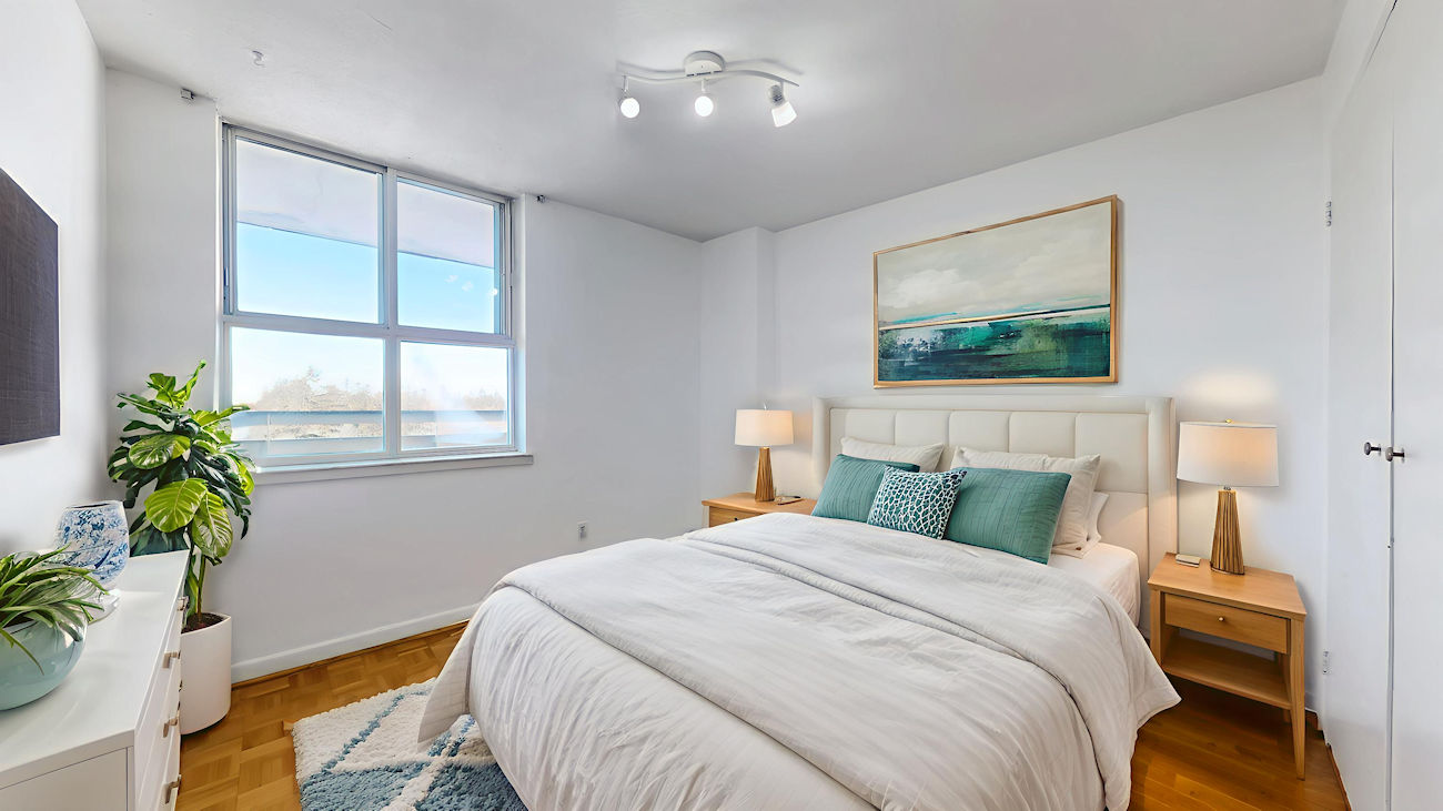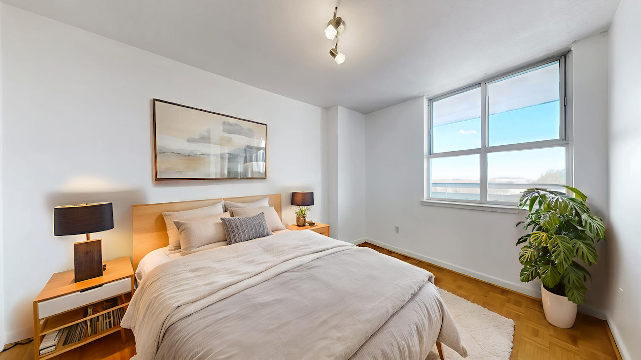 The kitchen and bathrooms are well sized and present strong renovation potential, providing an excellent opportunity for buyers to personalize the space and add value at an attractive price point. The primary bedroom features a large window and double closet, while two additional bedrooms offer comfortable dimensions suitable for family living, guests, or home office use.