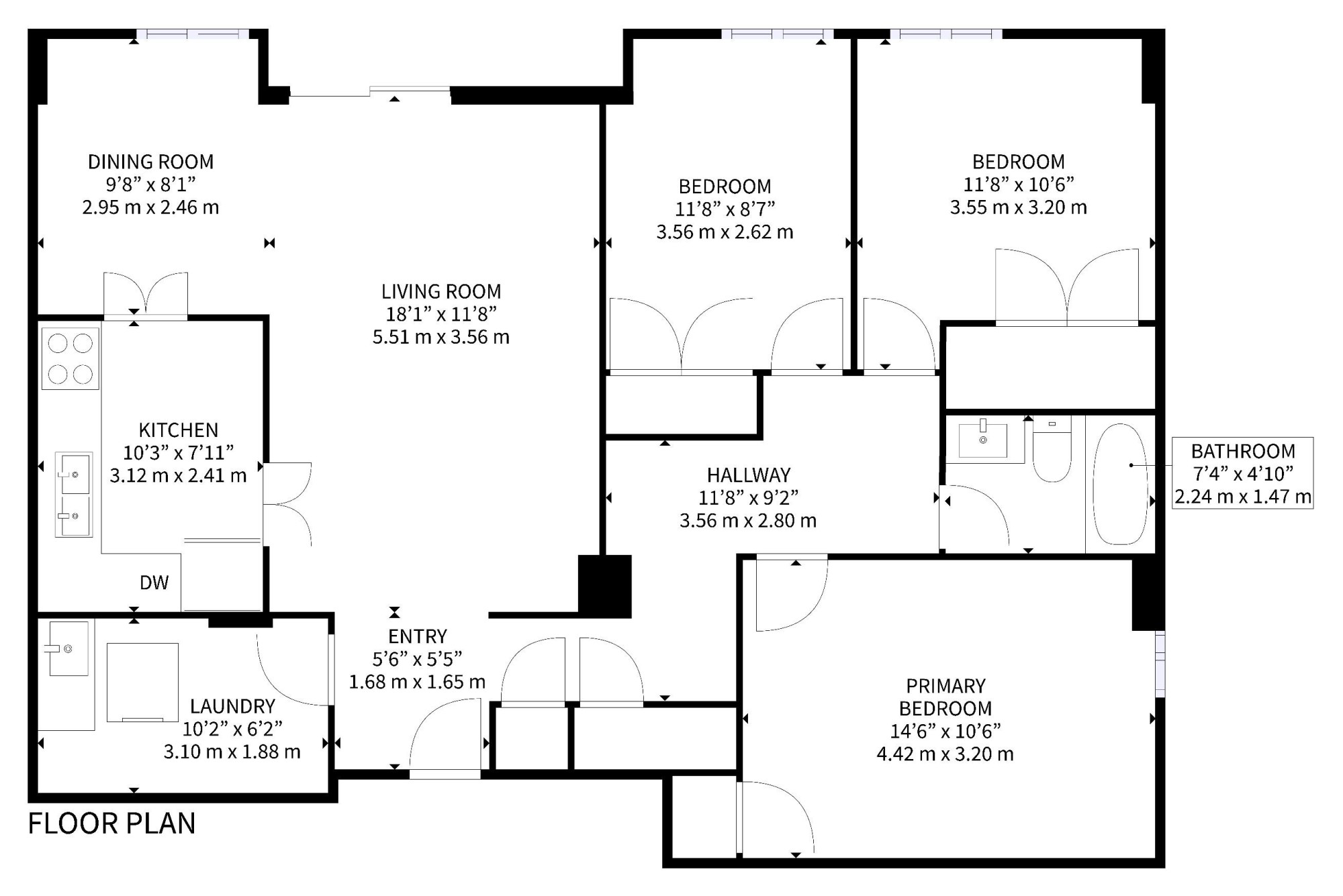 | 9 | Bathroom | Flat | 2.24 x 1.47 | Tile Floor, 4 Piece Bathroom, Built-In Vanity |