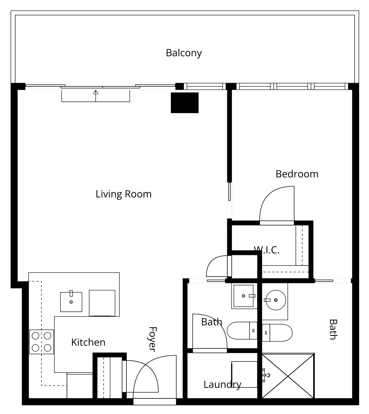 | 4 | Bathroom | Flat | 1.63 x 1.52 | 2 Piece Bathroom, Combined With Laundry, Quartz Counter |