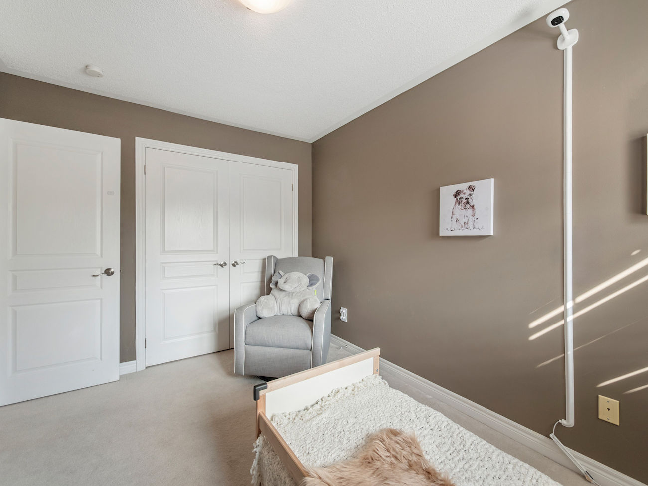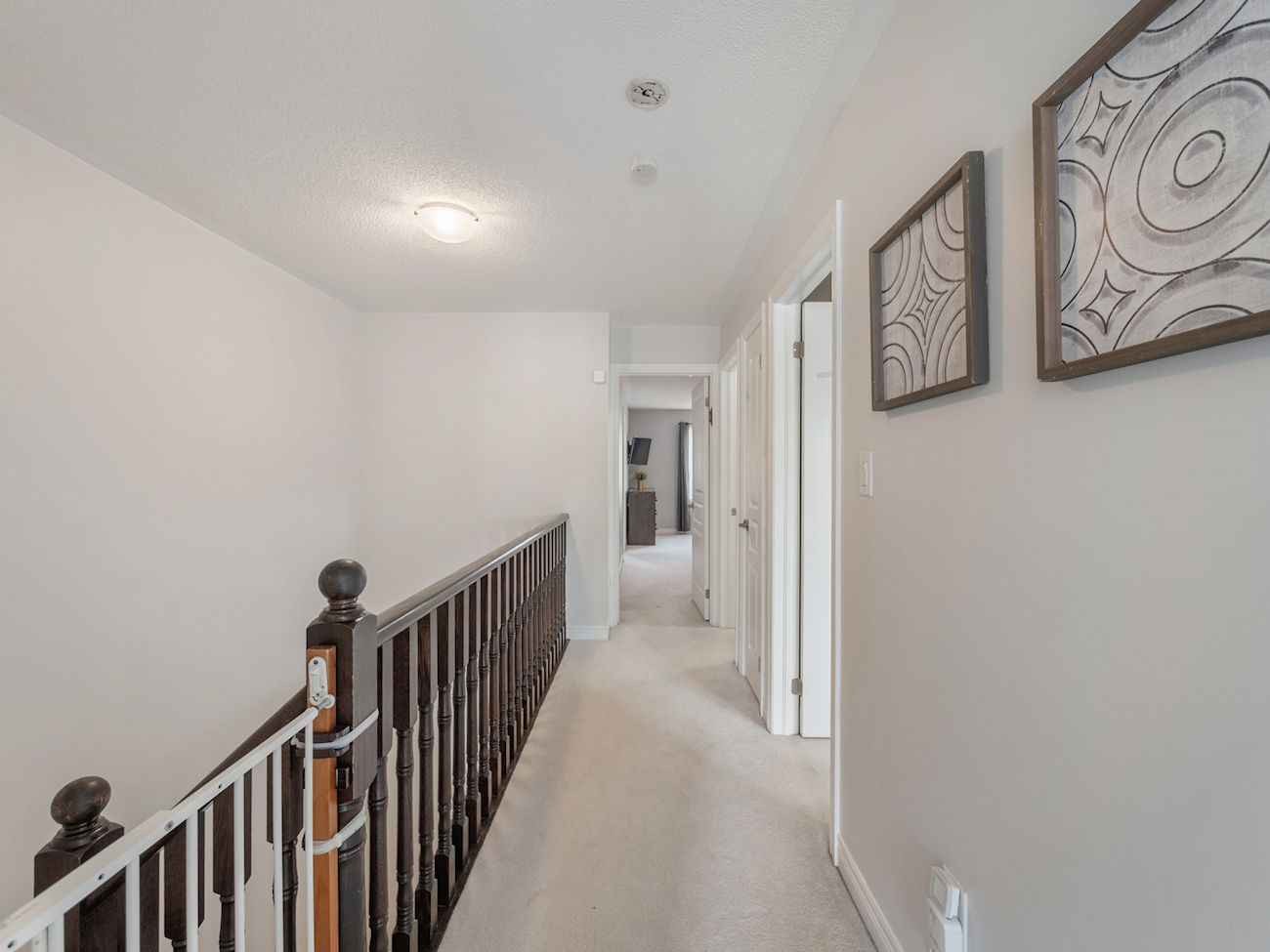 Outside, the private backyard invites relaxation with a custom deck and pergola, complete with a natural gas line for effortless summer barbecues. The garage offers mezzanine storage and a small walkout deck, while the tandem driveway accommodates two vehicles with no sidewalk maintenance required. Smart home enhancements, including a Google Nest thermostat, Lutron dimmer lighting, and a monitored security system, add both convenience and peace of mind.