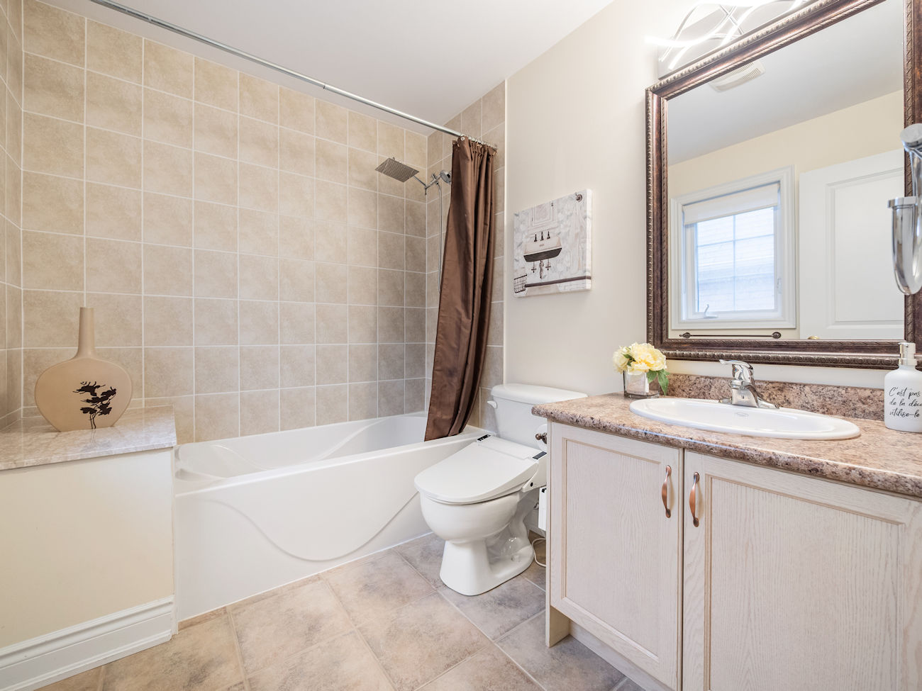 The finished lower level expands the home’s versatility with heated floors, a recreation area, home theatre, guest bedroom, and two additional bathrooms—perfect for family living or hosting guests in comfort.