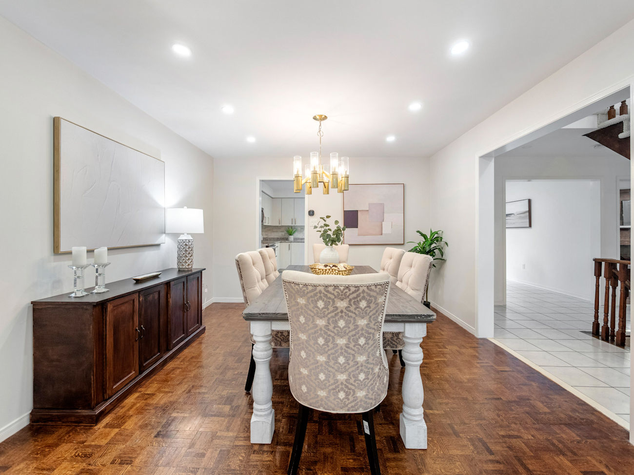 2 | Dining Room | Main | 3.66 x 3.71 | Parquet Floor, Pot Lights, Open Concept |