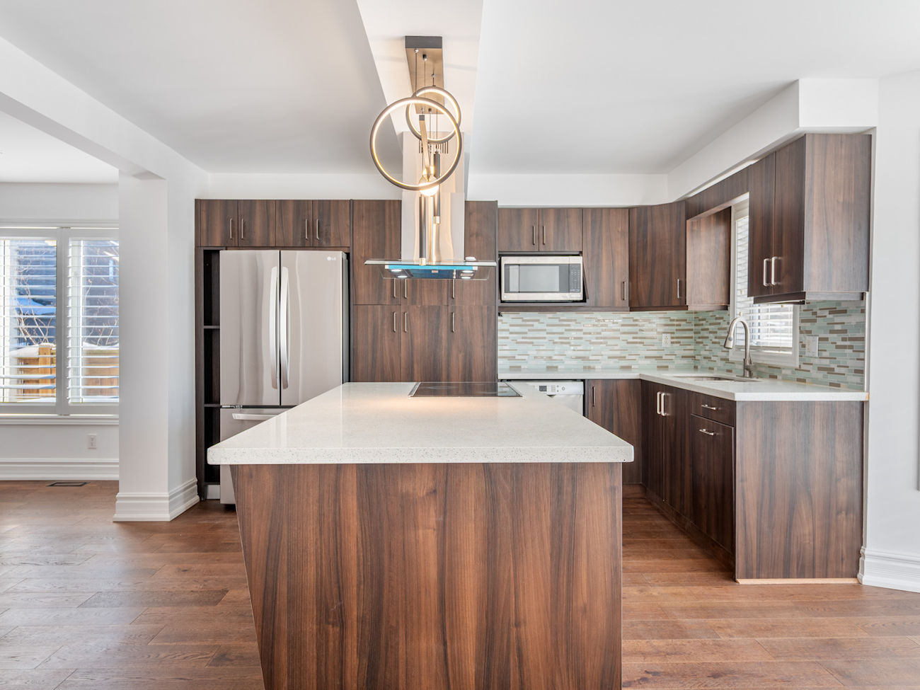 The open-concept main floor features brand new hardwood flooring completed in 2025, creating a warm and cohesive flow through the living and dining areas. Large windows bring in abundant natural light, while the freshly painted main and upper levels deliver a clean, contemporary feel that is both inviting and move-in ready.