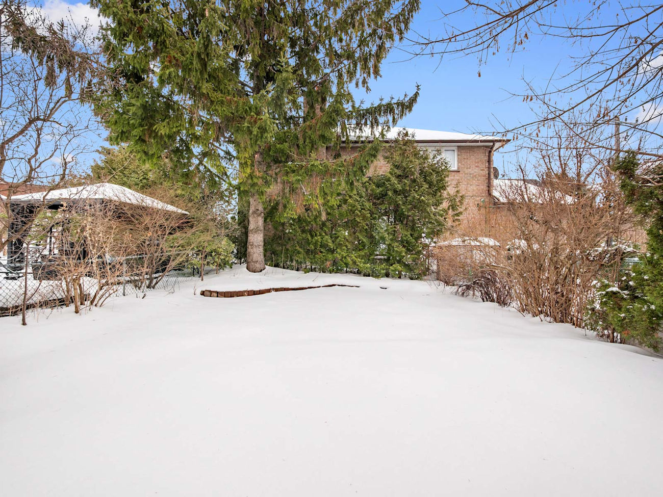 The main level features elegant hardwood floors, pot lights, and a bright living room highlighted by a charming bay window. A spacious family room with a classic brick fireplace flows seamlessly into the dining area, which offers a walk-out to a private, fully fenced backyard surrounded by mature trees, creating an ideal setting for both everyday enjoyment and entertaining.