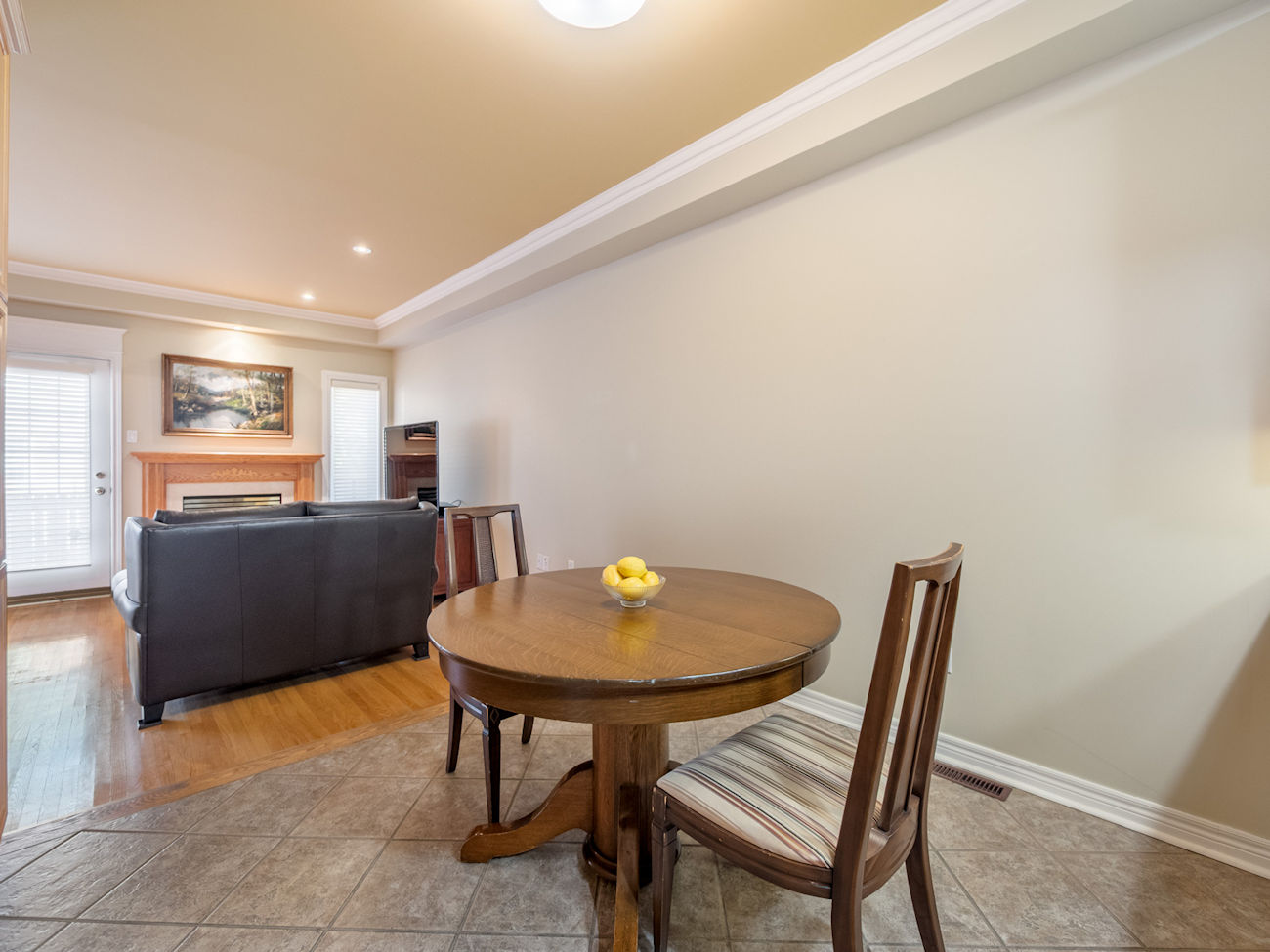 The main floor features crown moulding, hardwood in the hall and powder room, and a warm, open-concept flow made for both entertaining and everyday living. The kitchen impresses with floor-to-ceiling cabinetry including glass-accent doors, an oversized pantry, tile flooring, and updated appliances—fridge (2020) and oven (2024). Enjoy a cozy breakfast area and an inviting living room with custom blinds overlooking a new backyard deck (2025) and fence (2024).