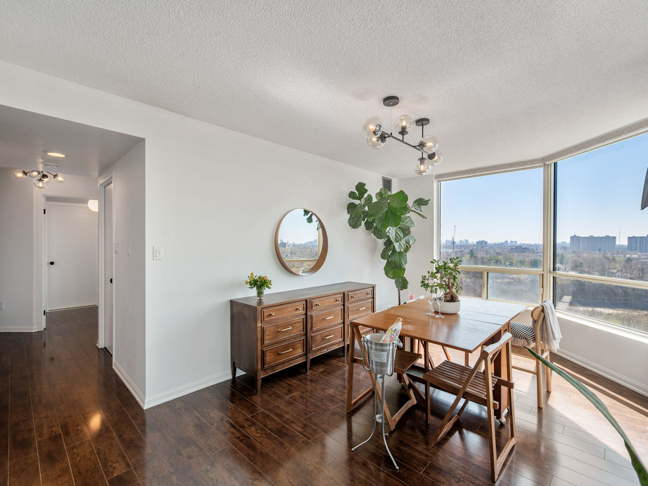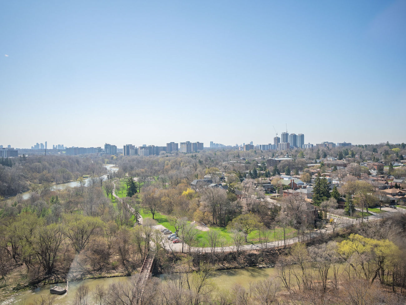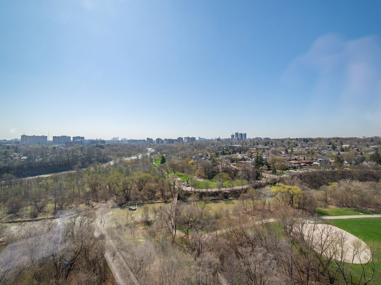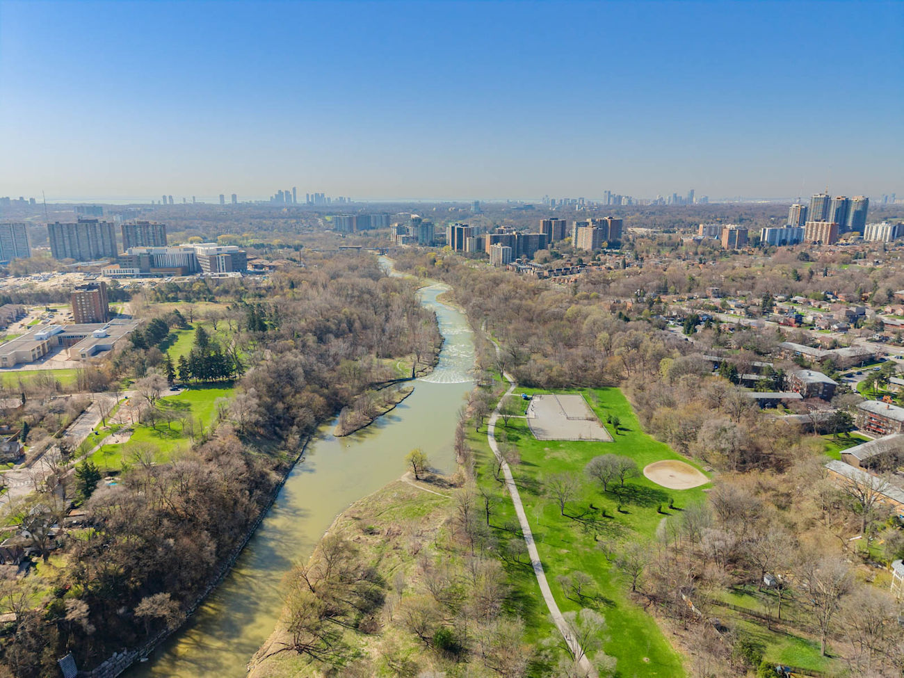 This beautifully renovated corner-unit residence in Weston stands out with its expansive layout, panoramic river views, and exceptional natural light, offering refined condominium living in a highly connected Toronto location.