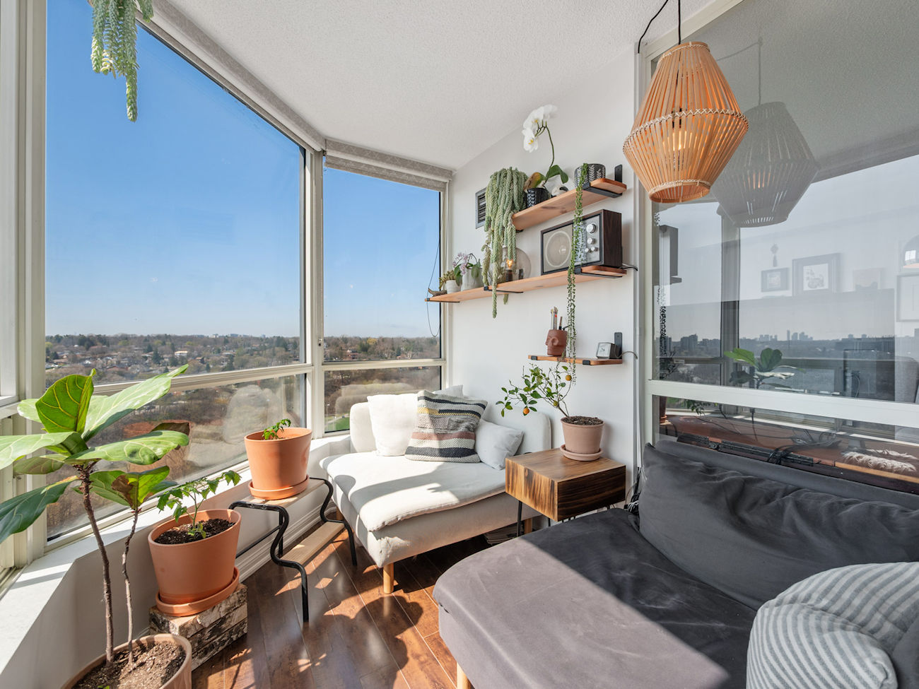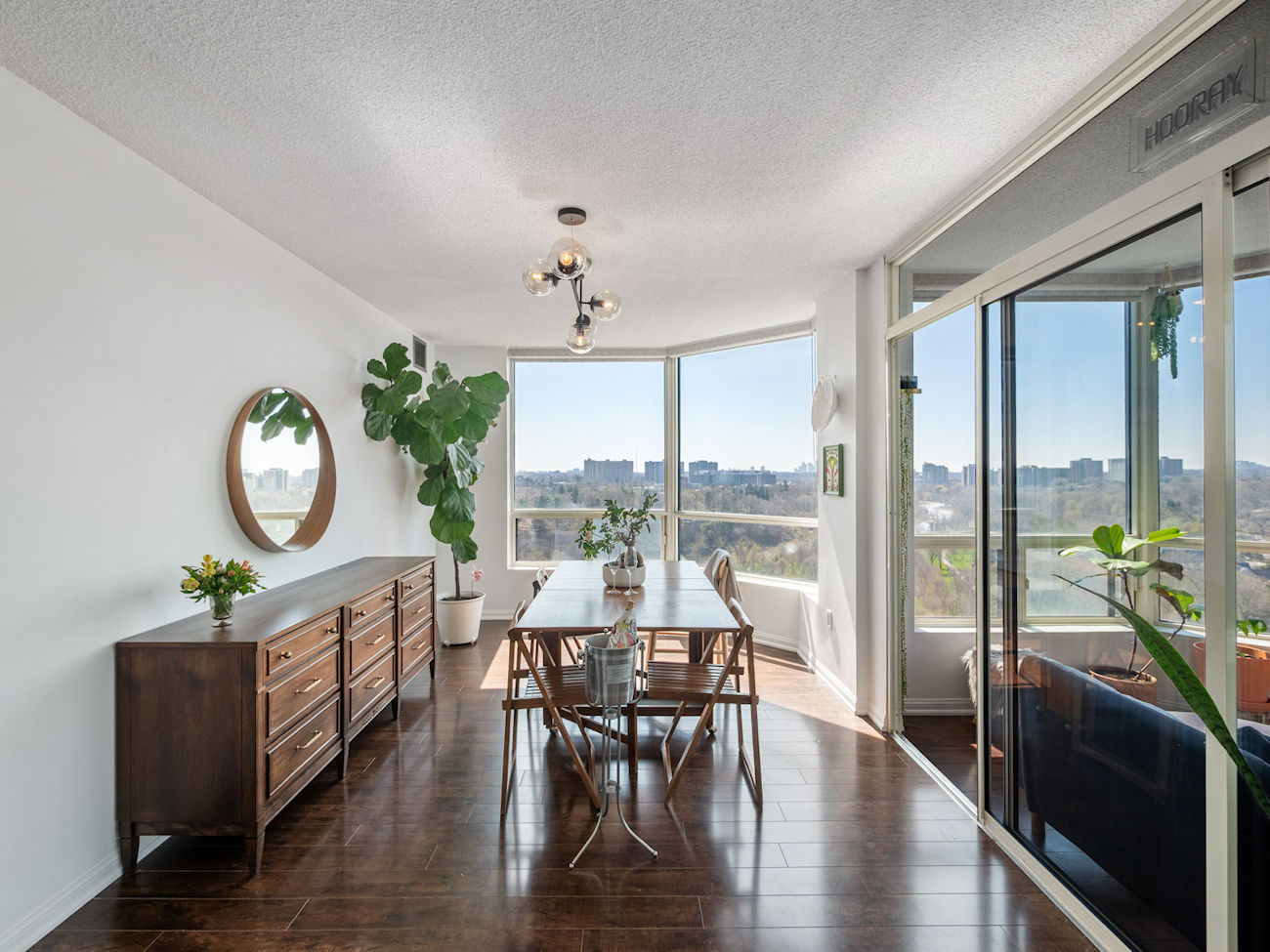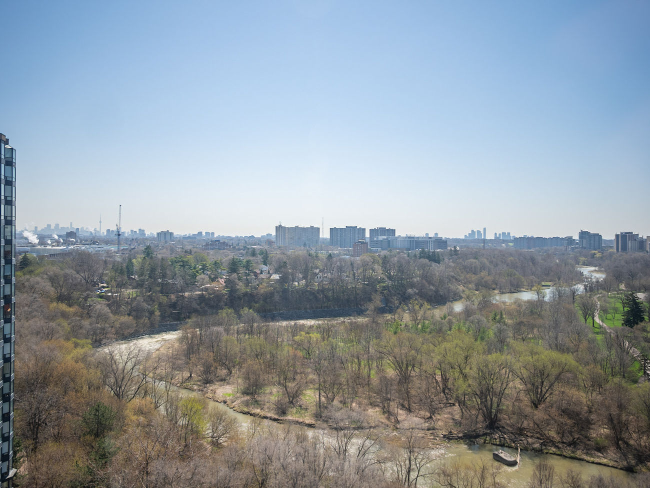 This beautifully renovated corner-unit residence in Weston stands out with its expansive layout, panoramic river views, and exceptional natural light, offering refined condominium living in a highly connected Toronto location.