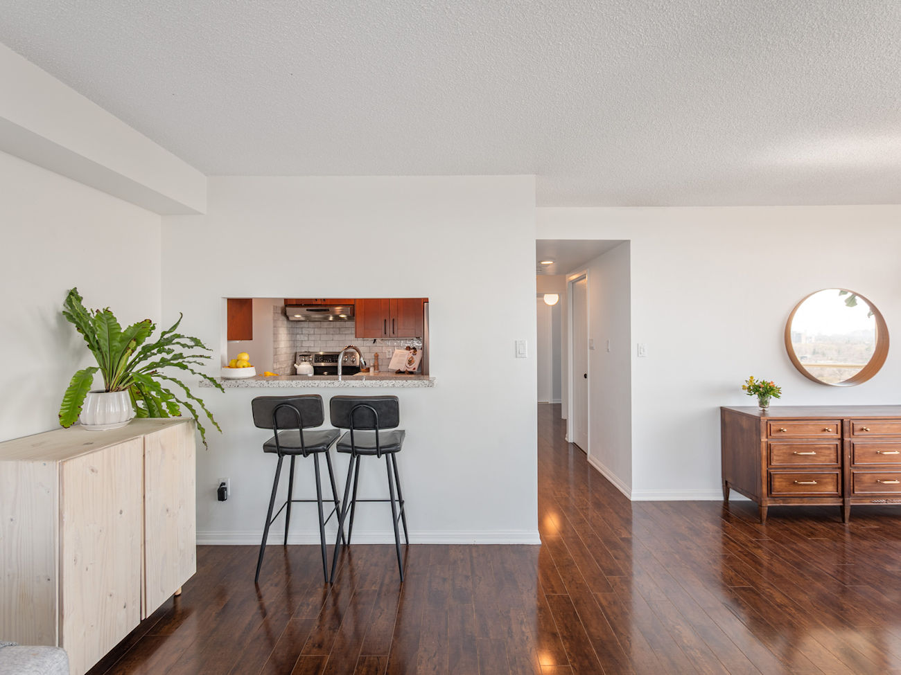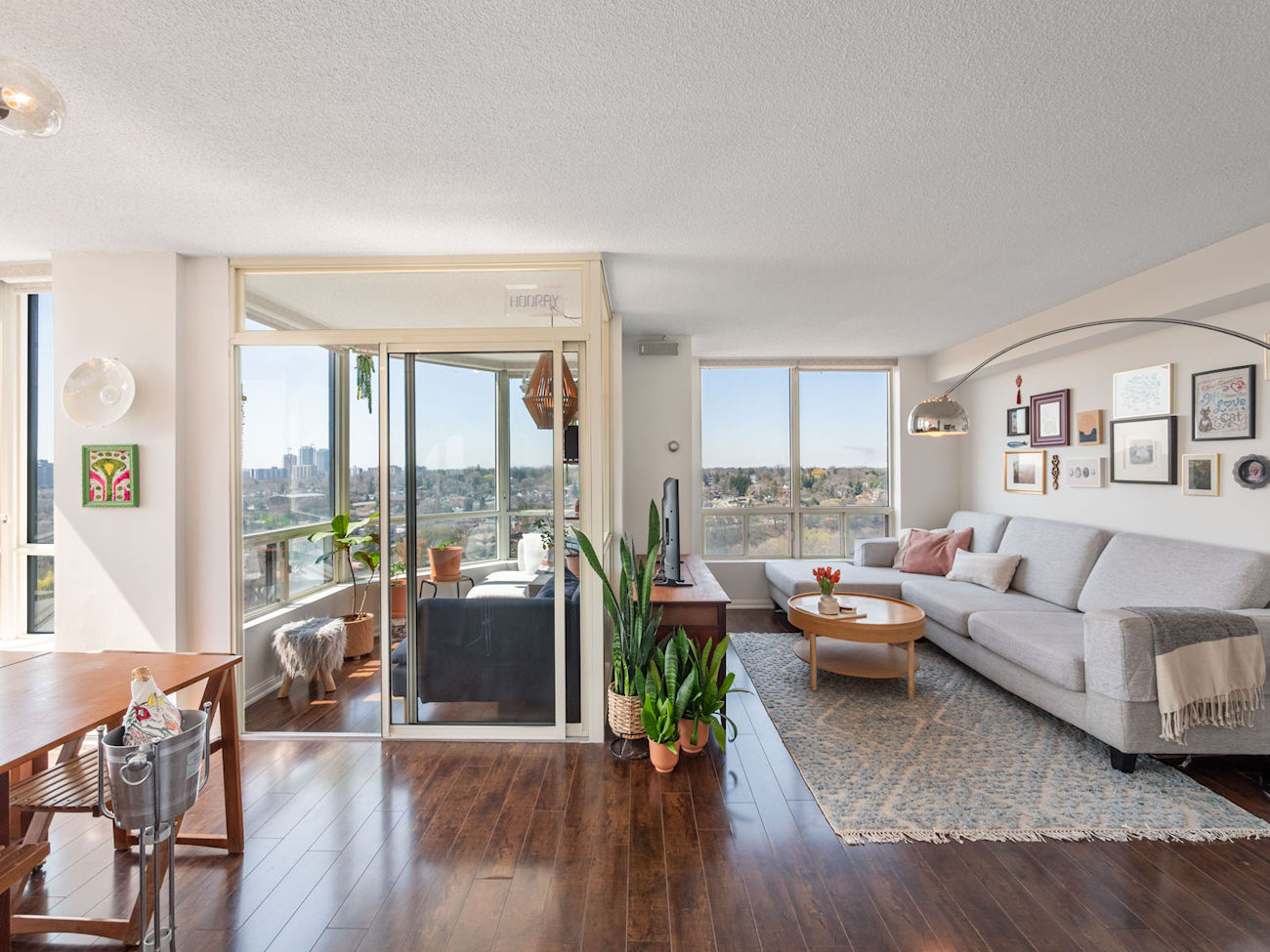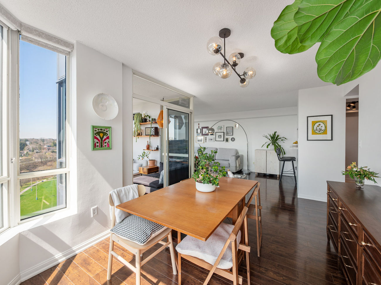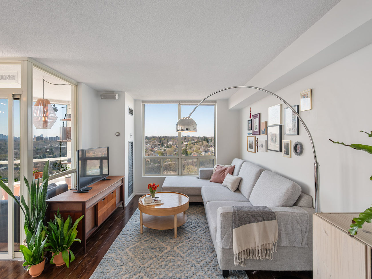 This beautifully renovated corner-unit residence in Weston stands out with its expansive layout, panoramic river views, and exceptional natural light, offering refined condominium living in a highly connected Toronto location.