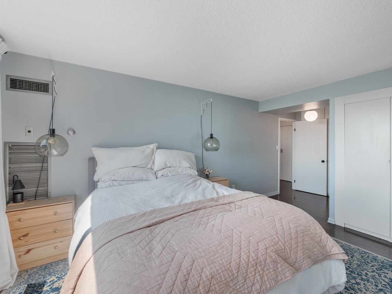 The oversized primary bedroom offers remarkable versatility, featuring built-in closets, space for a sitting area or additional storage, and stunning skyline views overlooking the Humber River, complemented by a well-appointed 5-piece ensuite. The second bedroom is equally functional, complete with a built-in Murphy bed, making it ideal for guests, a home office, or flexible everyday use.