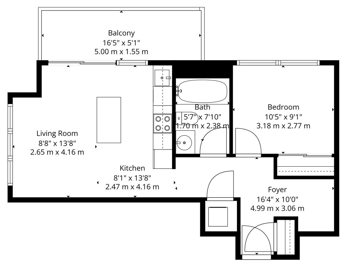 | 3 | Living Room | Flat | 2.65 x 4.16 | Open Concept, Walkout To Balcony, Combined With Kitchen |