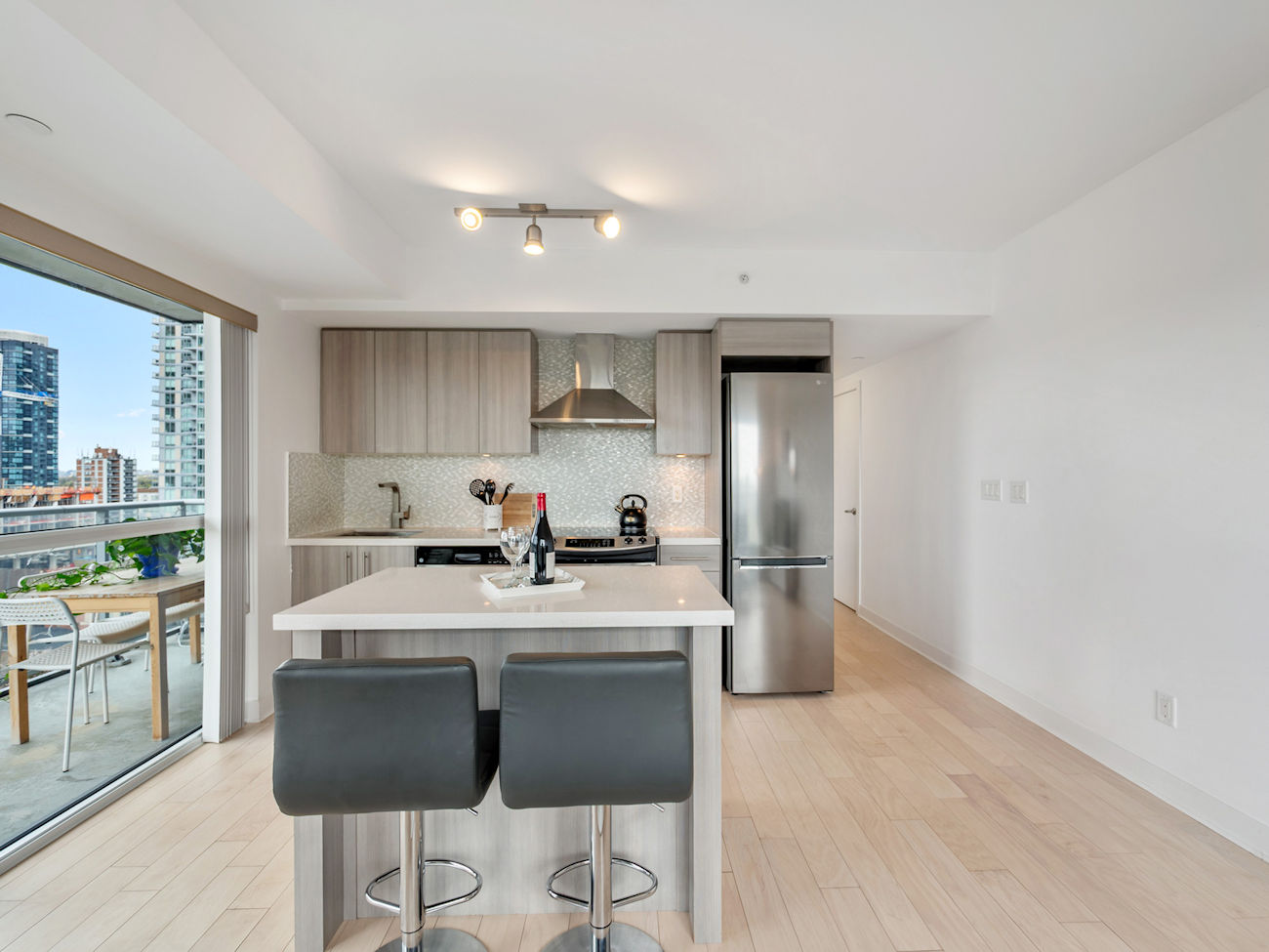 Recently built and thoughtfully designed, this 1-bedroom plus den suite offers approximately 585 square feet of well-utilized space with a clean, contemporary aesthetic. The open-concept layout is anchored by a modern kitchen featuring a centre island and stainless steel appliances, seamlessly flowing into the living area with direct access to a private balcony. Natural light fills the space throughout the day, enhancing both the functionality and overall feel of the home.