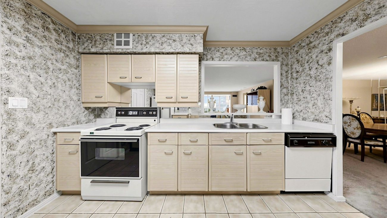 Flooded with natural light from wall-to-wall windows, the suite offers a thoughtfully designed floor plan with large principal rooms and a seamless open-concept living and dining area. The kitchen connects effortlessly to the main living space, creating a functional layout suited for both everyday living and entertaining.