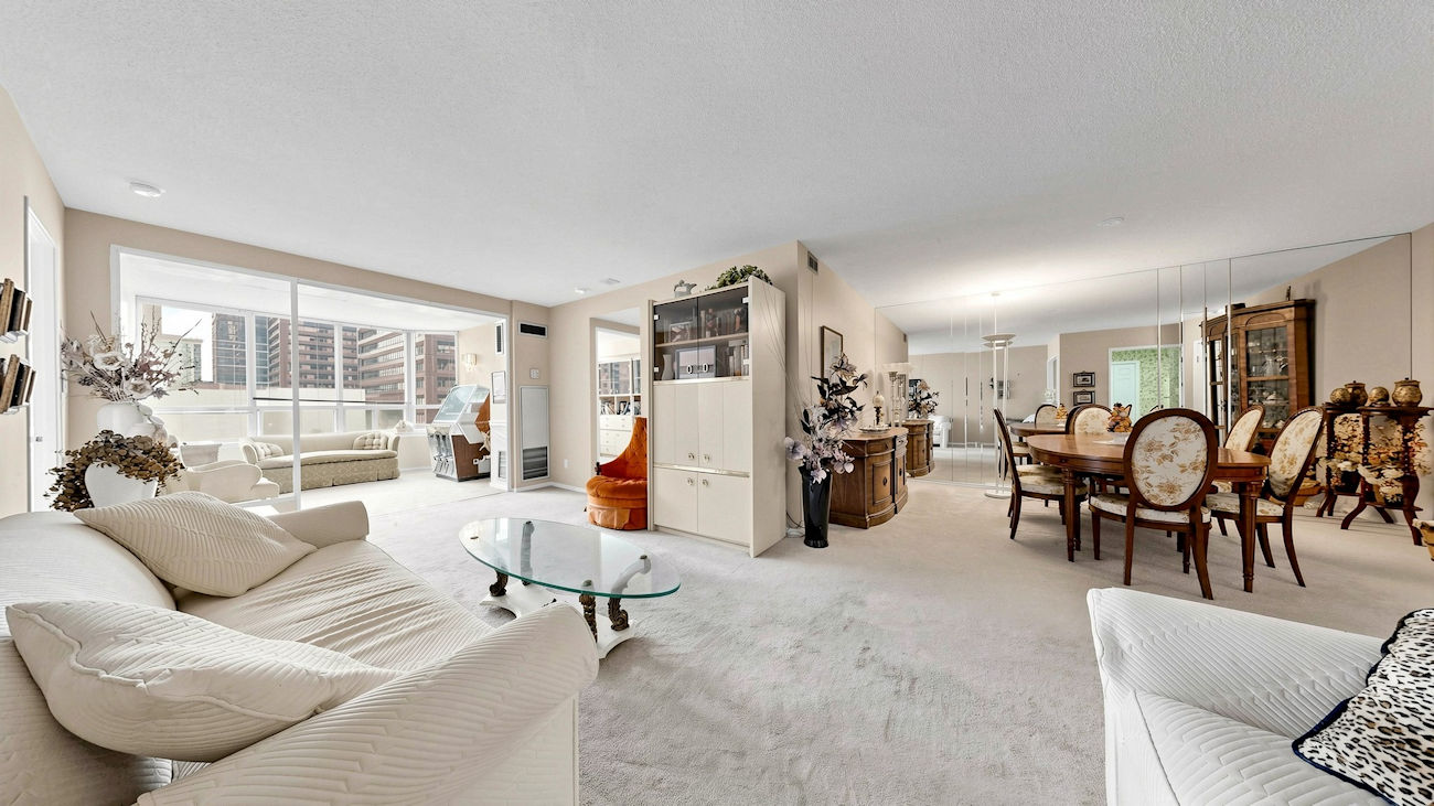 Owned by the same individual for 36 years, the suite remains in original condition, presenting a rare opportunity to renovate and fully customize a large footprint within a highly regarded Tridel building. Rodeo Walk offers an impressive range of amenities including a 24-hour concierge, indoor pool, gym, squash court, sauna, party room, guest suites, library, and ample visitor parking.