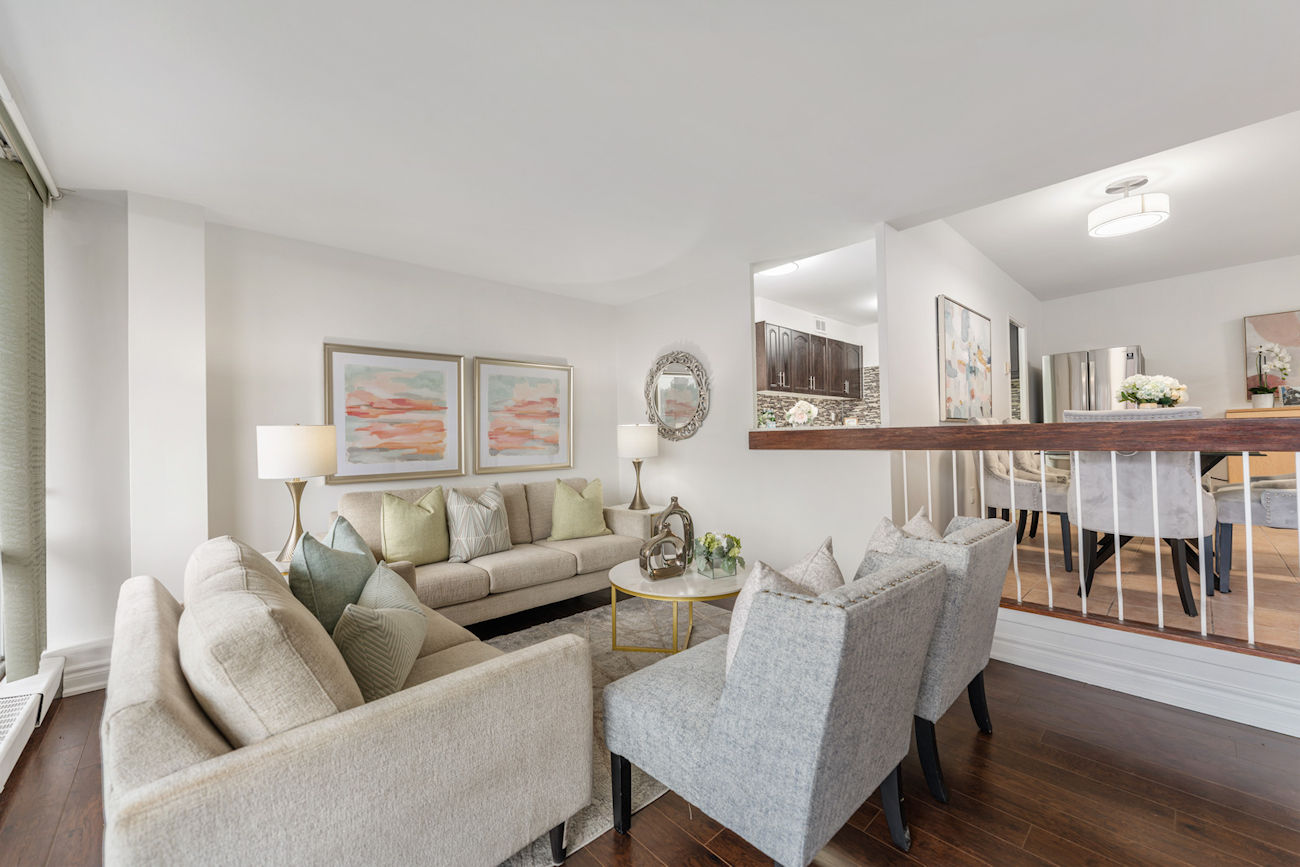 Welcome to this spacious and well-maintained 3-bedroom condominium at 1 Four Winds Drive, offering approximately 1,253 square feet of carpet-free living. The functional open-concept layout is defined by large principal rooms and an abundance of natural light, with a bright living and dining area featuring hardwood flooring and seamless access to a west-facing balcony with clear city views.