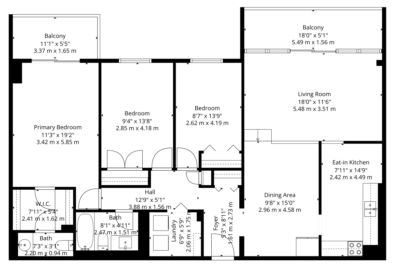 | 8 | Bathroom | Flat | 2.47 x 1.51 | 4 Piece Bathroom, Tile Floor, Built-In Vanity |